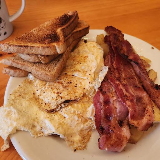 Read moreIf you like a lot of grease with your breakfast items, this is the place for you. Stopped in about 9:30 am on 9/18/24 since the other really good breakfast spot in town is now closed on Weds. The atmosphere seemed okay. The server was very nice and prompt. However, the cook needs to step up her game! Homefries and bacon were served on a puddle of grease on the plate. Eggs hadn't been scrambled long or hard enough. Instead of being soft, yellow and fluffy, they were white + yellow, then plopped on top of the grease from other items on the plate. The meal included boring wheat sandwich bread. Coffee was tasty. Too bad, this would have been a nice option for an occasional Weds meal. But I won't be back.....cook has no pride in the presentation of what's on the plate. Maybe she wanted to go back to reading...