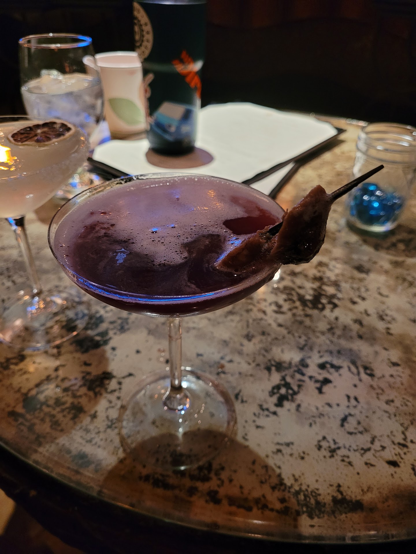 This Anaconda theme is carried out throughout the bar. The bar has a mirrored serpentine design, akin to a Chinese dragon, last seen at a Chinatown parade. A huge aquarium, filled with exotic fish, is the highlight of the interior. Anaconda is no doubt a beautiful bar, but I just don't get the Amazonian theme. Thus, I dropped a star. Drinks were good, service elegant, and having cocktails at El Monte Sagrado is special. However, I felt like I should be sitting in an elegant bar in Belem, Brazil rather than Taos, New Mexico. The fabulous architectural theme of the hotel needs to be carried out in the bar also. An architectural gestalt...