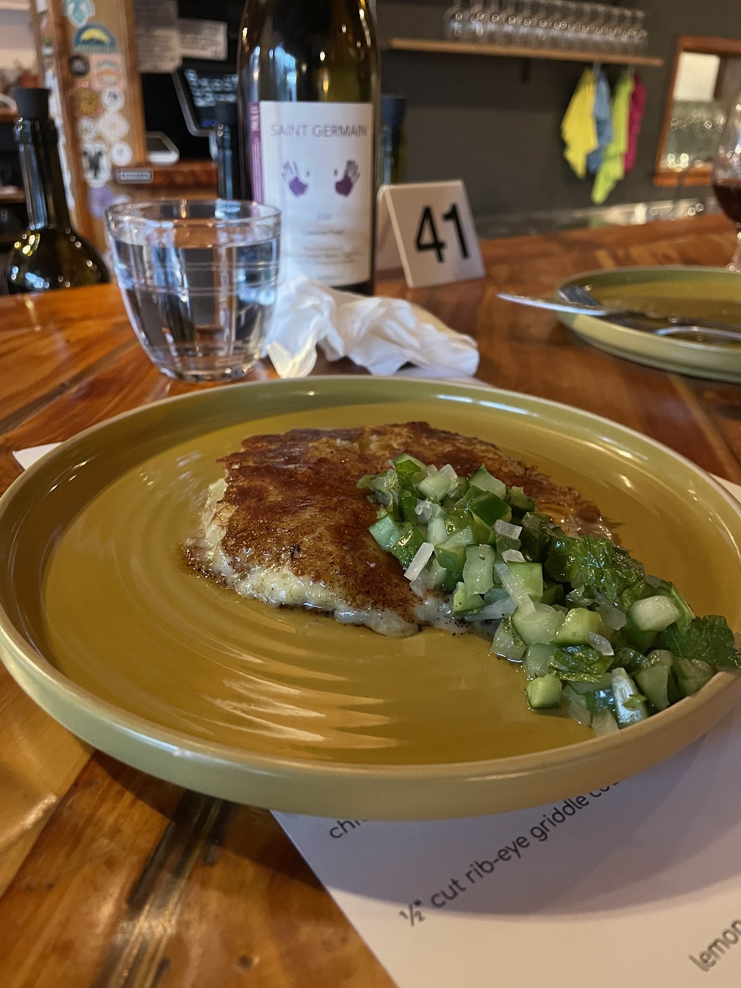 4 friends and I - all local to Taos finally made it in to Corner Office. Iâve been anticipating my visit, following them on Instagram since before they opened, learning about the history of the husband and wife owners and watching the biz settle in. This special place is a unique and stellar addition to the local food scene and they did it disappoint. We arrived early and before long the place was filling up nicely. The gorgeous and informative wine wall, a library filled with books on natural wines, etc., stunning decor and open kitchen are welcoming, homey and contemporary. The servers were lovely, attentive and helpful and they seemed happy to be there. I started with their As Seen on Instagram champagne cocktail which I highly recommend. Perfect balance and not too sweet. We all Shared an Italian Red with plates of the Crudite and the Frico. That flavor layered white bean sauce with the crudite was my favorite bite of the evening with the scallion pancake that was more of a perfect buttery and textured bread. With farm fresh seasonal veggies - Wowza! The Frico was about simple, layered flavors - crispy, cheesy with a brightness to it. Next the mushroom curry - silky curry with ample chunks of sweet potato under a flawless array of mushrooms with Brazil nuts and herbs. We were fans. Lamb pita - that sausage was next level! Chicken paillard with a classic wine butter sauce - someone has major chef skills here- loaded with micro greens which I was grateful for. They are delicious and really good for you! We would have tried the bistro steak which I was looking forward to but it was unavailable at that early hour. 8 small plates for 5 people for dinner and we were happily stuffed. We engaged with the two diners next to us who were way into a beautifully presented Lazy 6 bone marrow and the fennel sausage carpaccio with honey fermented figs which were apparently delicious. Itâs exciting to It is a gift to have these young, talented creatives with distinctive experience taking a chance here with a high end concept, elevated menu and casual vibe restaurant! Looking forward...