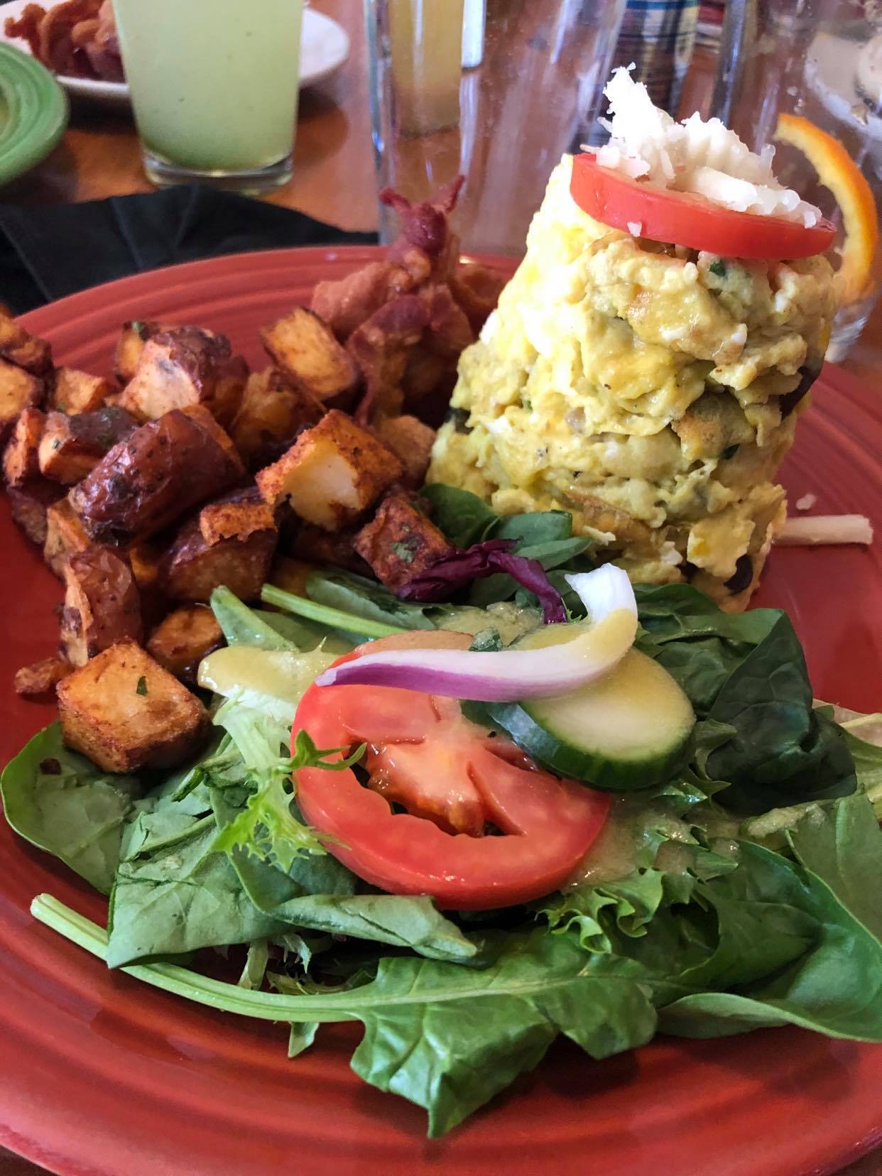 Arrived around 10 and had about a 20 minute wait. Obviously very popular place as people kept arriving and the line was down the sidewalk. Service was good good and coffee better than the last 2 places we have had breakfast at. Food did not live up to ratings/reputation. Wife had the scrambled egg tower. She described it as boring. It was just eggs with a bit of spinach and scrunched into a mold with a bit of dry cheese, not even melted, on top. I had the croque madame which turned out to be a ham and cheese sandwich with egg, melted cheese and sauce on top. It had plain old bread a bit dry and not grilled. Both plates had dressed greens, wife's came with Gutiz potatoes and I ordered a side of potatoes. Greens were good and potatoes came burn your mouth hot and crispy. But the star of each plate was mediocre and not even prepared according to the menu. Googled both dishes. Found a scrambled egg tower review and picture on Trip Advisor. Eggs, mushrooms, spinach smothered in melty cheese. Nothing at all like we were served. Had never had a croque madame before so didn't know how it should be. Checked recipes on line and the heart of is a grilled ham and cheese sandwich then topped with cheese, a sauce and finished in the oven. That is definitely not what...
