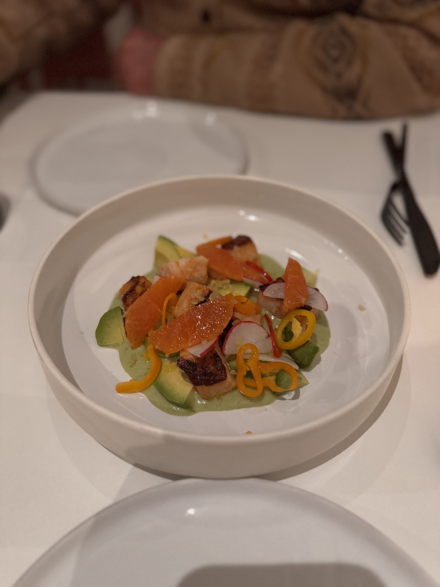 Read moreSuch a unique little place. Definitely recommend a reservation as the space is very small with limited seating. The food was delicious. We had the shrimp Agua chile to start, the shrimp was like nothing I’ve had before. It was cooked and cut in a very interesting way but was very tasty. For mains we had the sea bass and the short ribs. The sea bass was fantastic. Very flavorful and cooked perfectly. The short ribs were cooked very well and the polenta underneath was wonderful. For dessert we had the dark chocolate tart. The tart itself is 82% dark chocolate and is bitter like that dark of chocolate is and pairs very nice with the blood orange sorbet. The tart was very creamy and smooth. I would absolutely come back to try other things on the menu. The service was great and very friendly. I enjoyed the entire...