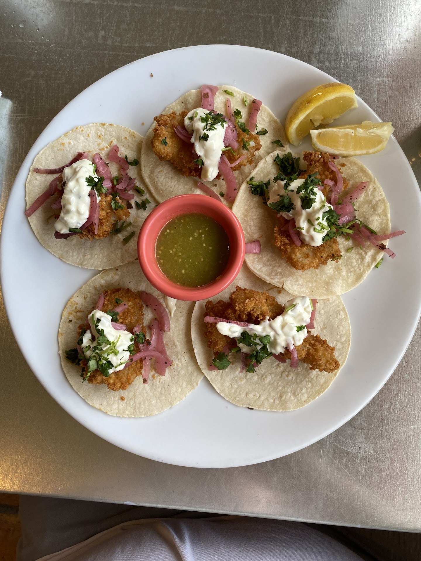 Read moreNostalgic moment sitting where we sat when it was Stella’s 210 a few years ago so a comfortable start. It was lunch so I passed on the Huevos Mexicana that I had read about. Deb had a chicken burrito with green chili. She said it about a three star offering. I had fish and chips and was hoping for better. The chips (fries to non Brits) were good a solid 4+, not greasy, nice texture and tasty. I have mixed feelings about ketchup in packets but don’t think bottled ketchup is necessary especially if the fries are the only dish for it. The tartar sauce was good. The fish was a nice light golden but greasy to touch and it appeared there was a space inside between the fish flesh and the coating. I mention that because there was a sense of undercooked coating both in taste and feel. The traditional offering with fish and chips is malt vinegar but local tastes may lean in another direction.