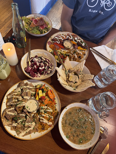First .. instead of serving us in customary order (appetizer, salad, then main course), our food was all brought to the table in one overwhelming slam. When we commented, the waiter replied, “yeah, sometimes they all come out at once”. Our expectation of a fine dining experience vanished at that moment. The chicken was underwhelming and extremely dry. The beef was horribly infused with the flavor of lamb (I am assuming they are cooked in close proximity), and I hate lamb so it completely ruined the meal. Additionally, as shown in the picture, it was a pile of fat chunks, quite obviously a cheap and fat-laden cut of beef. The hummus was generically acceptable but very thick and impossible to scoop with what seemed to be grocery store quality pita bread. The lentil soup was served lukewarm and, while the flavor was nice, was completely cold and off-putting in minutes. Had it been presented as a single dish prior to the main meal, it may have tasted better warm. The salad was served with so much dressing (which was quite sweet tasting) that the lettuce was literally floating. My husband muttered “salad soup” more than once. The beets with tahini were good enough, as was a lemonade spritz drink. (Back to the entree: I asked the waiter if the beef was cooked with the lamb and he said they were cooked separately. I then suggested that it seemed that they were cooked in close proximity such that the steam from the lamb could easily infuse the beef and he said, “yeah, probably”.)
