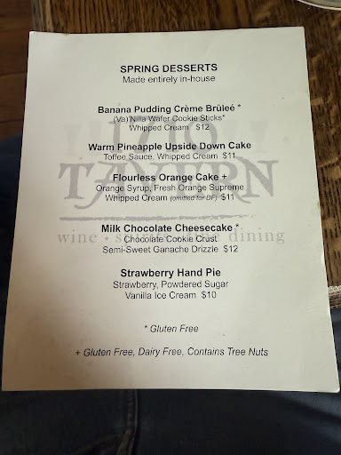 Read moreThis place definitely has the "Tavern" atmosphere going for it. My wife and I had been wanting to try it so when our friend's mentioned that they also wanted to try, we set a date. It looks and feels like an old Tavern, which we thought was really cool. The server was attentive, and service times were fine. The reason for 3 stars was quite simply the food. Nothing was "bad", but nothing was great either. In our party of 6, each said that they would not order what they had again. I ordered tuna, which was okay, (the carrots served along side the tuna were a far bigger hit than the tuna itself). Again, not bad but not great. My friend ordered the Duck, and was very underwhelmed. Another person in our party ordered scallops and when I asked her how her dinner was, the response was 'Meh". I really want this place to be great because it has such a cozy and inviting feel. At $75-$100 per person, I was just expecting more. The wine list was okay, but in hindsight I wish I had tried a cocktail...