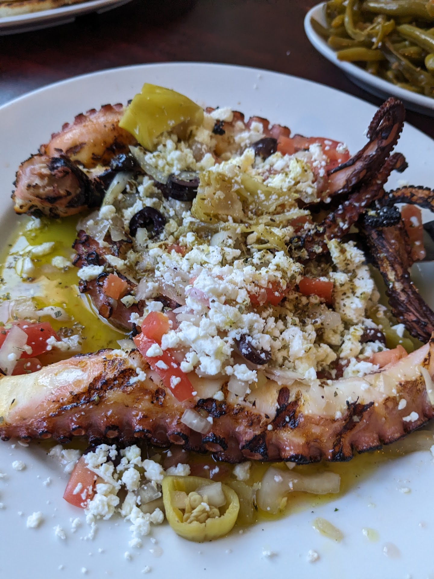 Read moreI would literally give 0 stars for Atmosphere. 1st, they left the front door open and Flies were invading the entire restaurant and landing all over the food! I'm Greek born and raised in Tarpon and I had a Greek catering Co. There a bit good and alot bad. Let me break it down. Service is slow and spotty. The actual restaurant floor leans back and is sliding down🤨 The ladies bathroom floor threshold was in such bad shape it literally crumbled beneath my feet I was worried my leg would fall thru the broken floor! Prices here are insane for the Atmosphere and the quality of the food.This place is below diner everything old and gross. Spend some damn money and update the place! There is not alot of small plate options everything is huge and expensive. You can't just order a Gyro you have to get the salad and fries with it for $16! The spanakopita was a 7 out of 10 . The Greek bread was dry and bland. The Bright spot was the seafood platter, with Fried shrimp, fried smelts, and Grilled Octopus this they got right!! Abundant portion and Really large huge shrimps super fresh, the smelts were a bit dry and chewey but the Grilled Octopus was incredible and done right. When I told them about the womens bathroom threshold the staff looked at me like I had 2 heads!! No response. Honestly there is so much competition on the docks they need to do better! Tourist may pay ridiculous prices for a shabby outdated falling apart restaurant with poor service and dangerous floor but locals we know better. At Least Hellas is consistent have their act together and deliver...