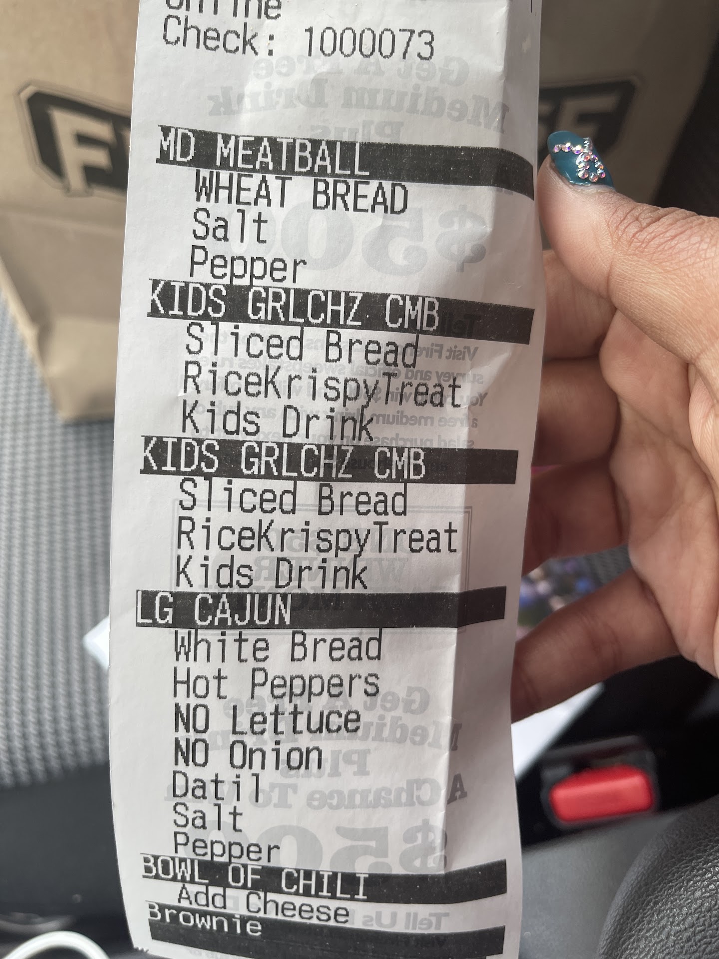 Mike Rooney, you've got a huge problem and his name is KENNY! His poor customer service skills are negating the deliciousness of your yummy food! My husband and two adult kids LOVE Firehouse Subs so when one moved in to Tarpon Springs, they were happy. I am new to GrubHub and decided to try Firehouse Subs today using that delivery platform. Food arrived fast enough. I should have made Janice wait while I checked. I ordered subs for myself and decided, since it was late in the afternoon, to order for my husband WHO WORKS AS A CIVIL ENGINEER IN ST. PETERSBURG FLORIDA. The instructions for his sandwich read,