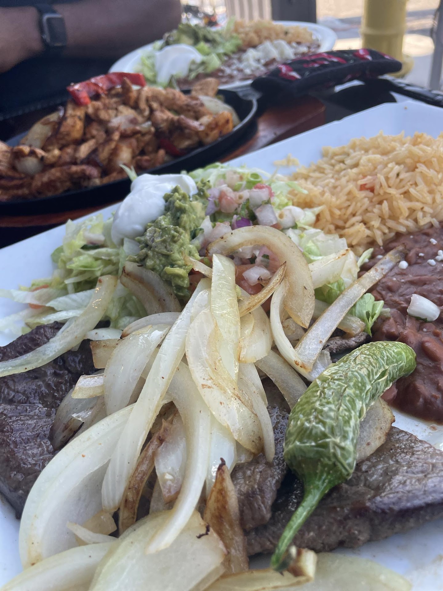 Ordered the Carne ( Steak) Asada which comes with side or Rice, beans their house salad guac + Sour cream.