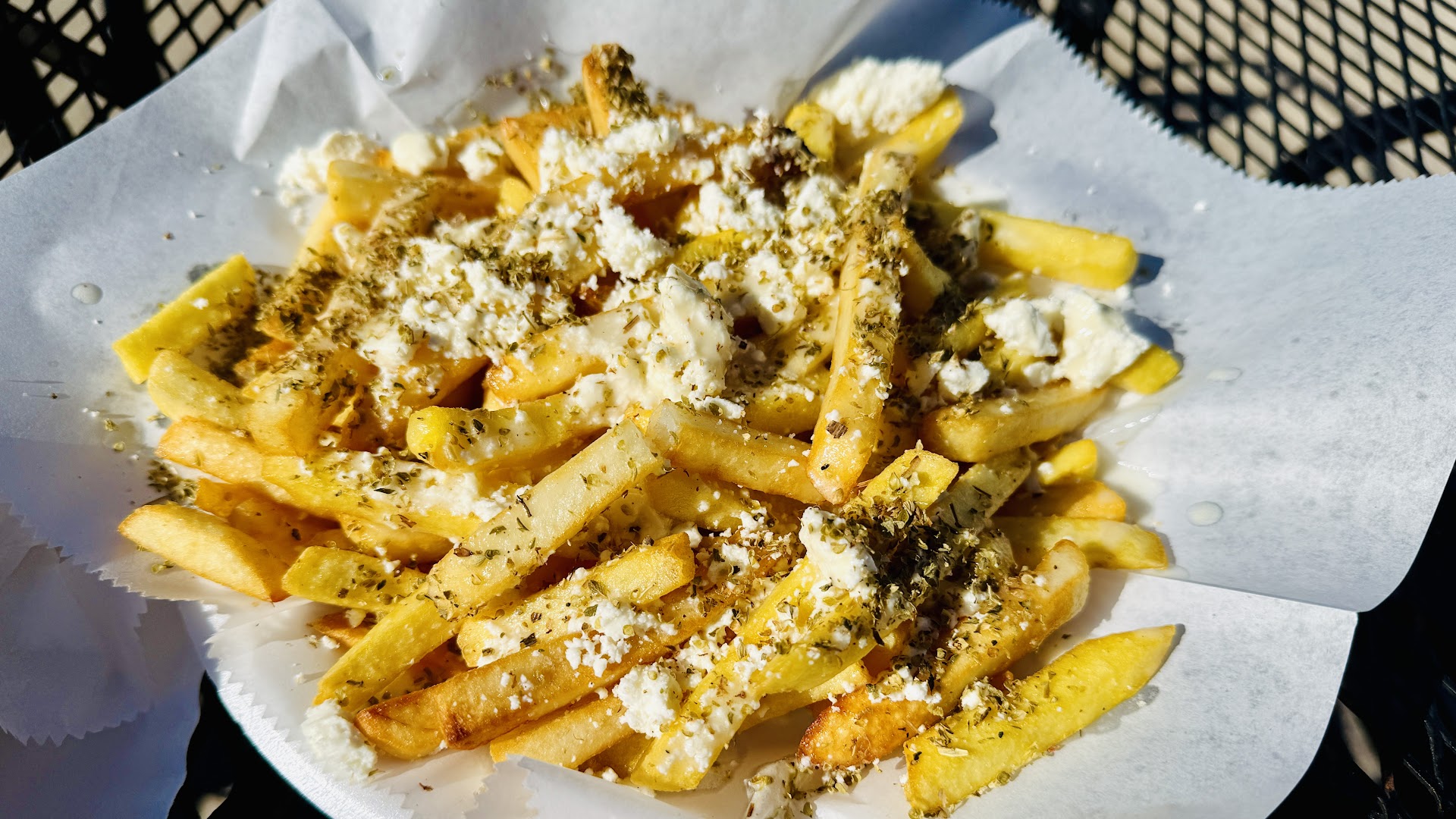 Between us, we had the chicken kebab plate, a Gyro pita, and a small Greek salad. The salads were very fresh and generous portions. The chicken kebab was well seasoned and the Greek fries were very good. The Gyro pita was huge! The meat was very tasty and fresh, as were the veggies and tzatziki sauce. The “small“ salad was also huge and fresh.