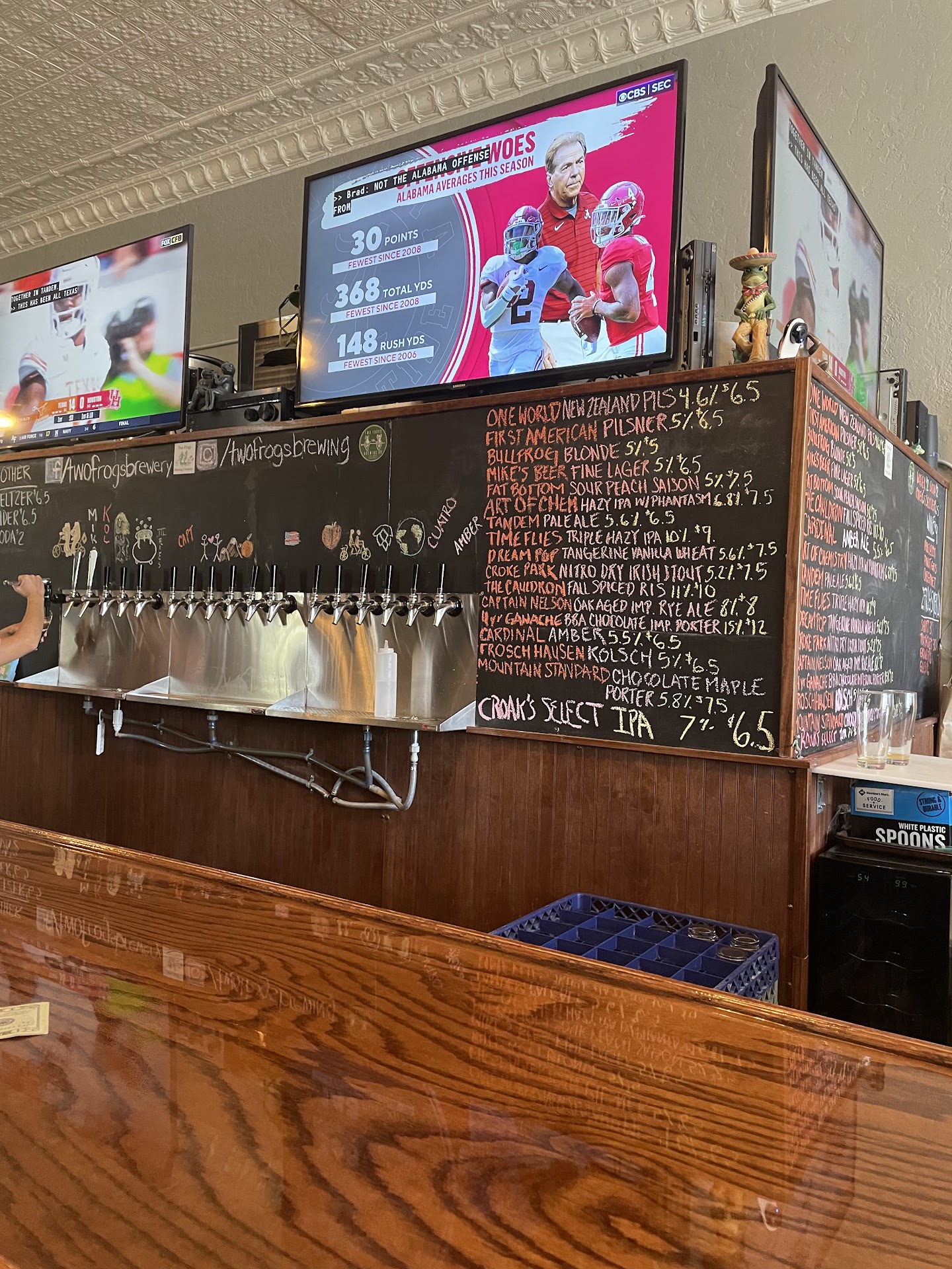 My husband and I was on vacation and we pass by Two Frogs as we was looking around downtown tarpon springs and on our way back from the toy store we decided to go back the way where Two Frogs was. We had a couple of beers and they was very flavorful. The gentleman was very helpful and very informative. The young lady was very sweet. My husband ordered the snowmass as his last beer I tried his and we decided to get a growler. The gentleman told us that it would hold for four days if we didn't popped the pop. We lived in Alabama Hanceville. We got home Friday open it up on Saturday and it had a head and it was fresh and delicious. We would recommend this brewery to everyone that was going to ...