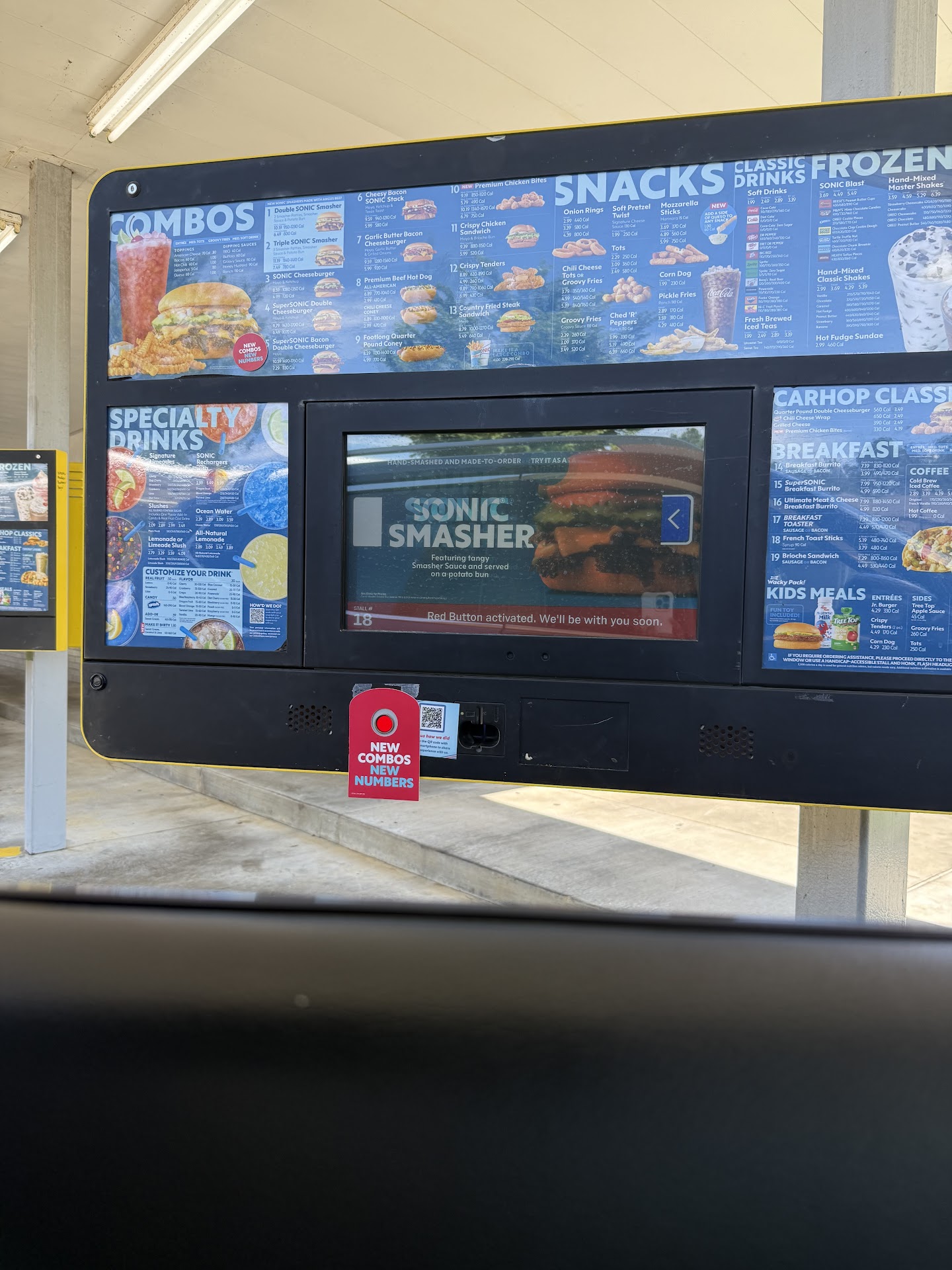 Read moreIf there was a rating below 1 star that is what I would give this Sonic. I ordered a double cheeseburger and a regular cheeseburger, cheese sticks and tater tots with chili, cheese and onions. This was the worst food we have ever tried to eat. The patties do not even taste like real meat, the vegetables on the burgers were old and soft and the tater tots and cheese sticks dripped with grease so bad that the bottom of the bag tore it was so saturated. After a single bite of each burger they were thrown away. The tater tots and cheese sticks were also inedible . Tis was a total waste of $20 Will never eat here again. I will go down the road to...