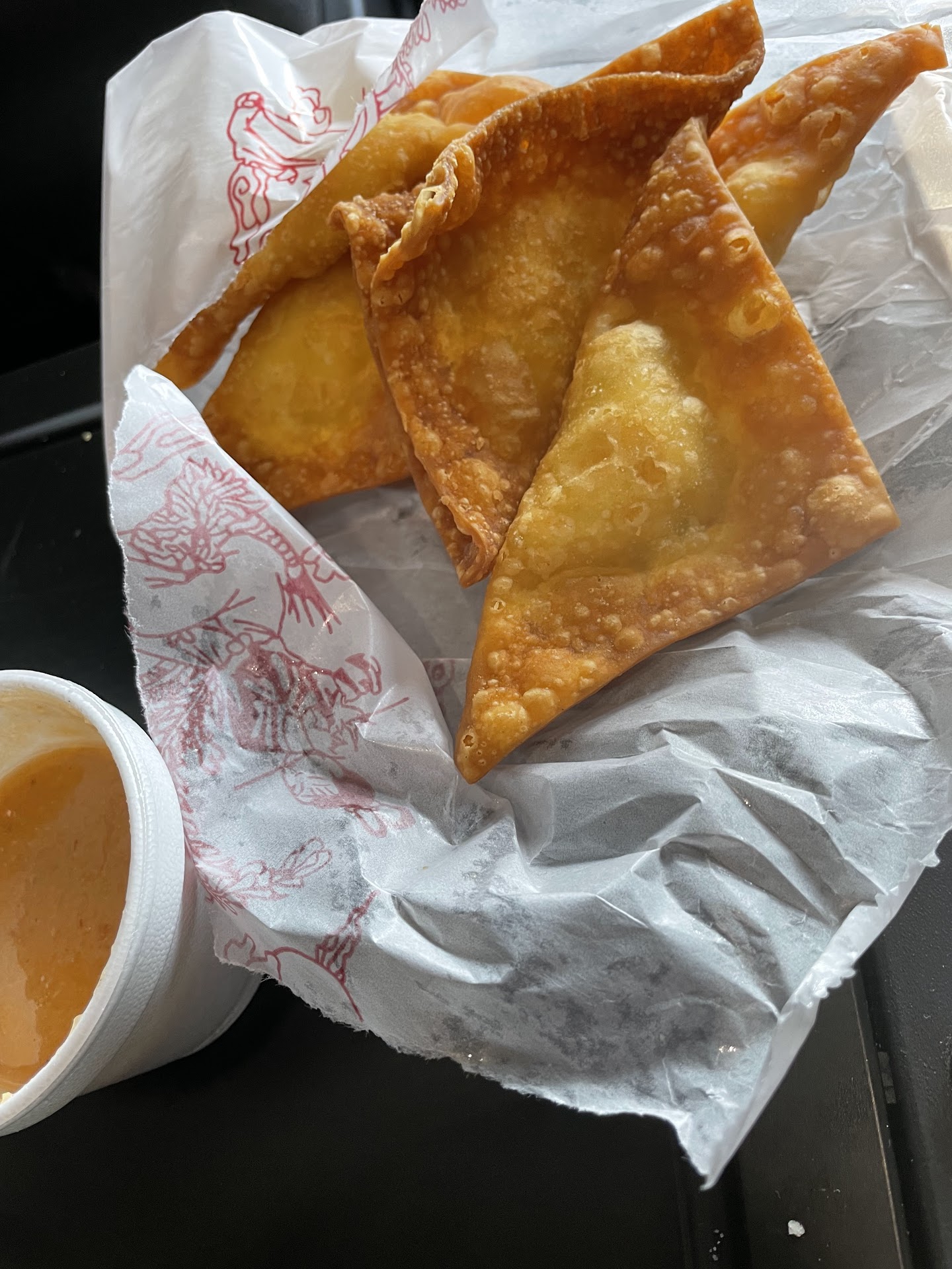 Crab Rangoon had awesome crab flavor and great. Got the fried jumbo shrimp also really great.