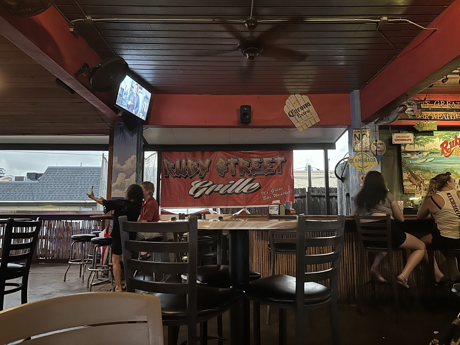 Ruby Street Grille is a casual American restaurant overlooking Lake Dora, Florida, featuring regular live music with a covered patio for indoor/outdoor dining. Their menu offers a fair variety of seafood, pasta, pizza, burgers, wings and a full liquor bar with wine and beer. Their interior has beautiful murals that are painted directly to a wall or column, wherever there is space. They have live entertainment on their covered patio Wednesday thru Sundays. Right from the start, our servers (Carolynn and Emily) made sure that we had a good experience from beginning to end as they took excellent care of us all evening. We had a large group for a birthday celebration and their service was fantastic, smile, no extra charge! Reports of food from around the table; Boneless Wing Dings for an appetizer were great for two of us. Ruby Slippers, crispy potato skins, BBQ pulled pork, shredded cheese were good. Portobello Mushroom Swiss Burger by three of us were great. Mahi Fish Tacos, Two corn tacos filled with blackened mahi then topped with jack cheese and Napa slaw, served with fries were good. Everything was delicious, all of the staff was very friendly and helpful. We will...