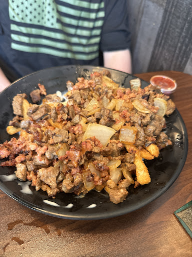 So, let's start with a Mexican food staple, rice AND beans...doesn't exist without an upcharge when ordering 3-tacos meal. Secondly, I like chorizo, so I had a chorizo taco,she said "like a street taco?" I said "whichever is bigger" " well, they both have same amount of meat" cheap chorizo, and not much taco for the price js. Queso dip was bland and dribbly (runny) Now to address my wife's plate, first of all, I'm pretty sure a horseshoe starts with Texas toast, not soggy garlic bread...One positive about the whole place, the fries were fresh...we expected better, especially for the price...LONG LIVE RICE...