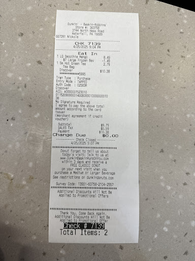 Read moreI had a very disappointing experience at this Dunkin’ Donuts. The employee, Nickole (who didn’t even have a name plate), was extremely rude to me. I asked for a smoothie with a cone, but she refused in a very disrespectful manner. Her attitude was unprofessional and made me feel very uncomfortable. Employees should be trained to treat customers politely, not with rudeness. I hope management takes serious action to improve customer...