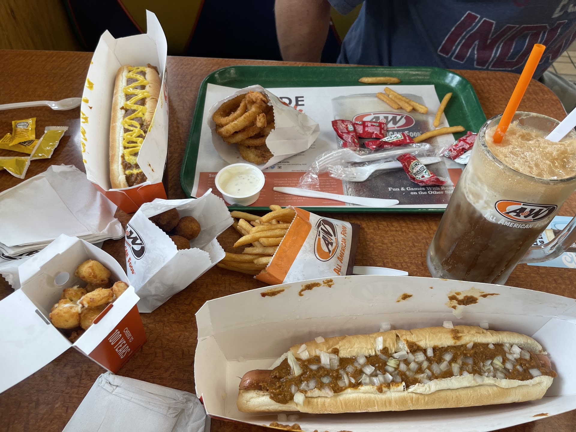 Read moreNote from 2022, For many decades this my favorite A&W location with a large retro dining room. Was closed for about a year until they found a new owner, so Happy. Sad they discontinued the phones at each booth that connects to Counter for placing your orders. No outside drive up order boards or canopy to park under, they come to your car with tablet waitress take order. Just go inside and have a seat, waitress come to table or line up at counter inside. This place really busy around lunch time. Yeah we had a coupon sheet, they let you use all you want. Got 2 Bacon Cheeseburger only 6 bucks good deal. She had really delicious Chicken Tender combo with Fries n Rootbeer. We added a Xtra order Tenders n Deep Fried Mushrooms absolutely fantastic. The mind blowing instant Addiction Sriracha Cheese Curds perfect Spicy I kicked up with A&W Spicy Sauce WOWED. A must try best ever eaten Cheese Curds for the Win. I stretched a couple Curds and placed on Burgers for another OMG. So Happy got a location near my house to pickup more Spicy Cheese Curds. Yes support these local Ma n Pa owned franchise locations so we have them around another 100 year's. Note this location Telegraph n Northline in Taylor open 60 year's now a great place for a family visit. #awtaylor @awrootbeer #awrootbeer #srirachacheese #curds #chickentenders #rootbeer #downriverclassic...