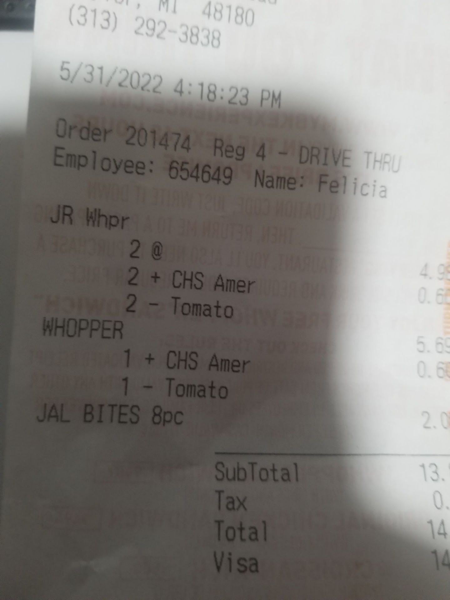 Read moreA friend and I took my Jeep Compass and we went to the Burger King by my house. I didn't feel like making a pizza she wanted to do cuz it'd be 400° in my home so we decided to journey to Burger King and everything was great. I love their four for five deal. You get one of three sandwiches Junior sandwiches. I'm sorry and I fry nuggets and two of the itty bittiest pops you've ever seen 𤣠What I didn't like was a gentleman asked us to pull up. There was nobody in front of us. We went right to the window. She ordered a Junior Whopper combo as did I the four for five deal. The gentleman asked us to pull up. We pulled up it took 11 minutes to bring us out our food and we had one napkin missing a half of a french fry and they're not big fries and one nugget. One out of four so we got three nuggets out of one so the food was great But the service as always is something to be left desired. I'll go back cuz I like Burger King. I don't pull in there unless I have at least a half hour. Which kind of doesn't make sense called a fast food...