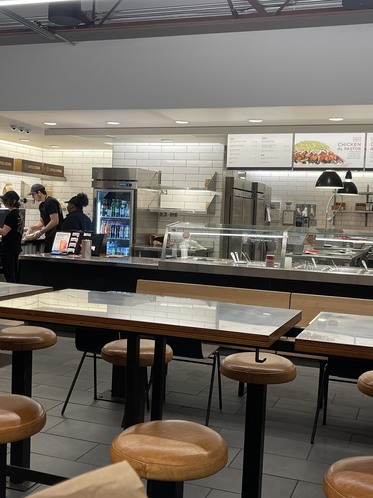 Read moreStaff here isn’t friendly, as I was eating my food, I literally saw a customer walk up to the counter, stood there for 1-3 mins with no greeting at all and no one else in here besides the “manager” standing down by the register. He walked out. I don’t blame him. I won’t return here, this visit was the last straw for me. This location is always out of everything, ouf chicken Al pastor, out of fajita veggies, out of lettuce and out of steak. The staff is rude, not friendly, and they just stare you down like you inconvenienced them. I love chipotle, but unfortuantely they’ve gone down hill I hate to admit over the last few years. Sad. I can see this location closing at some point. This place needs ACTUAL MANAGEMENT AND HERE IN THE EVENINGS, lots of people doing absolutely nothing and not making anything! No wonder why you’re...