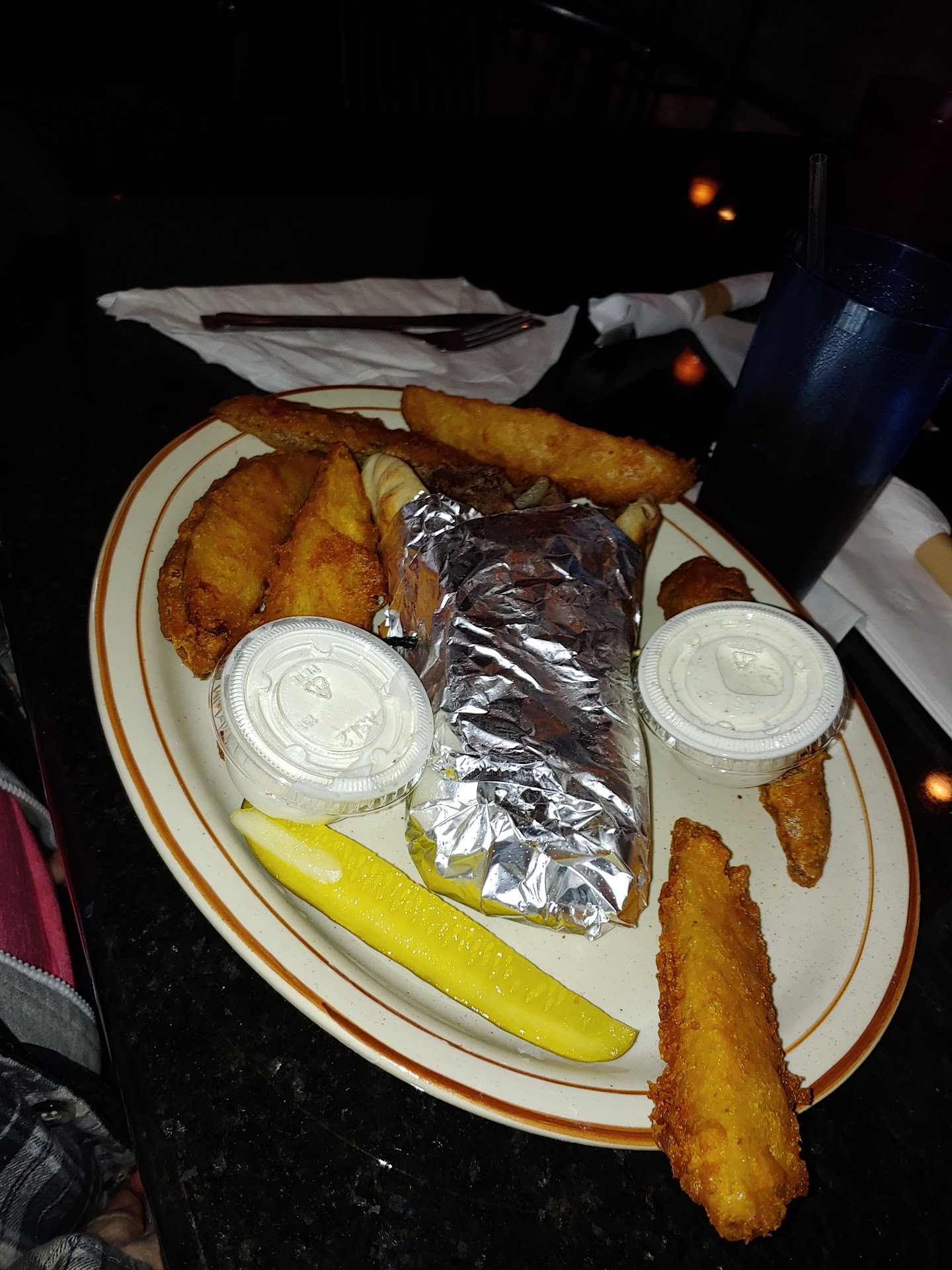 Maybe I shouldn't order fish on a Friday during lent. Still waiting for my cole slaw and my beer refill.