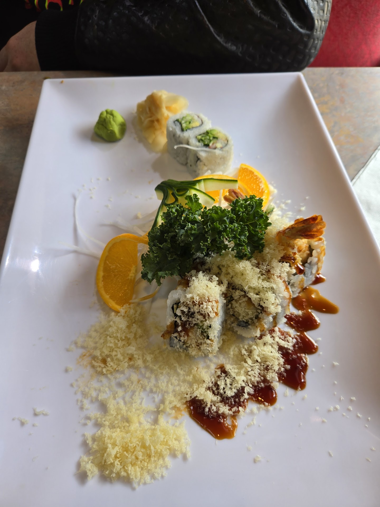 This is an open and honest review - me and my husband came in for dinner. When we got our waters, my husband realized his cup had floaties. Then when our waitress brought him a new cup, there was even more floaties than before. Then when my cup got refilled, a HAIR came in with the water that was poured so we asked for canned pop⦠The sushi was alright, the chicken fried rice was good. I ordered a menu item and they didnāt include everything that was supposed to be in my entree (because they were out) and didnāt disclose that to me. They ended up not charging me for that which I was very thankful for⦠after the drink mishaps, we felt scared to continue but wanted to give it a fighting chance. Overall, Iād say itās fair to give a two star review. The staff was nice, it just wasnāt up to par with everything we had...