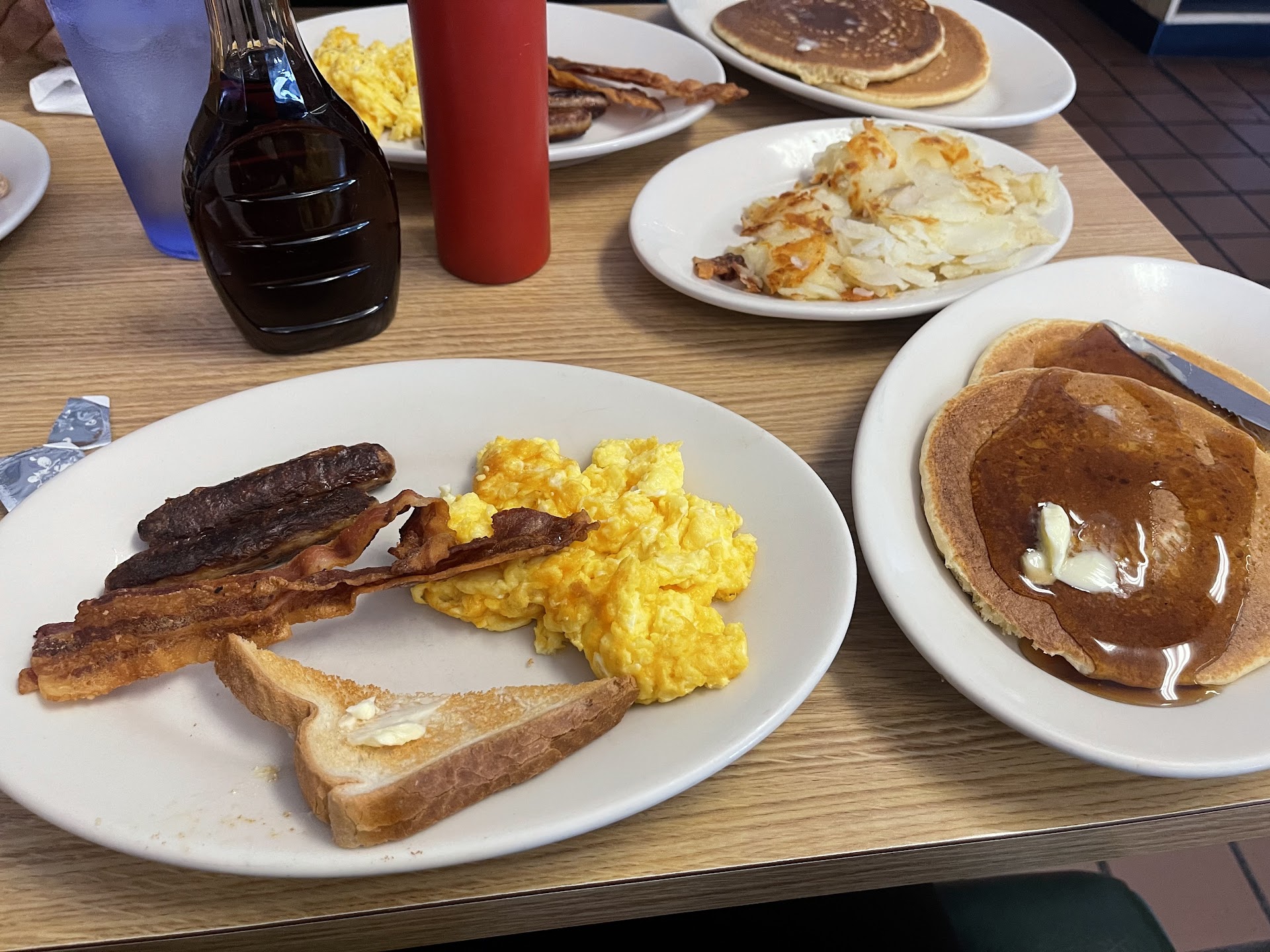 My visit was on a Monday Morning at 8:00. I was given my choice of seating of which I took a small booth. My waitress was very prompt. As soon as I sat down I was offered coffee, and there where menus in pockets along the wall. I chose the Philips Special. It came with basically two of everything. (Eggs, bacon, sausage, pancakes, toast.) It came within 15 minutes of ordering. My coffee cup NEVER got less than 1/2 full as the waitress was always making rounds through the tables. She was very outgoing and seemed to know all the customers by name. I like that. When my breakfast came she even offered another plate for me to put my pancakes on if I so desired. All the food was great. One of the best places I have been downriver and there have been a lot. Good job Philips You are definitely an original This was my first time here but it never felt that way. .