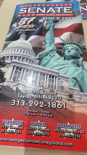Read moreWe stopped at Senate Coney Island today because it's the place we go when we are down river. We do not live in the area, so it's basically a treat for us. The food was as good as its always been. However, the service was TERRIBLE!!! Our waitress pretty much brought us our food, and dissapeared. She never came to check on us to see if we needed anything. When we finished we sat for 15 minutes waiting while she counted her tips, watched TV, and played on her phone. I finally got up, went to the counter by the kitchen, and got my own carry out boxes. After boxing up our food, and cleaning our table up. Our waitress finally brought us our bill. I have NEVER not left a tip at a restaurant in my life! Today was the first time I did not tip my server. It's bad enough to have a server that ignores their customers, but it's even worse when the other server's there don't come by and check on you, or get your server for you. I've been going to the Senate since before they moved to the larger restraurant. Obviously, if that's the place where we always choose to go when we are down here. I'm VERY disappointed to come here, and have a horrible experience. Unfortunately, having such great memories of what the Senate was like. I have always recommended it to other's that go down to the area. Now, I wonder if that is a mistake to tell people to go there, and eat. PLEASE ADDRESS THE ISSUE WITH YOUR WAIT STAFF. No matter how good your food is, if the service is bad it's not worth the time visiting. Normally I leave a 20-30% tip because I've been a server, and I know how important tips are. But, as a server if the tips are important to you. Then you should treat the customer's like they are just as...