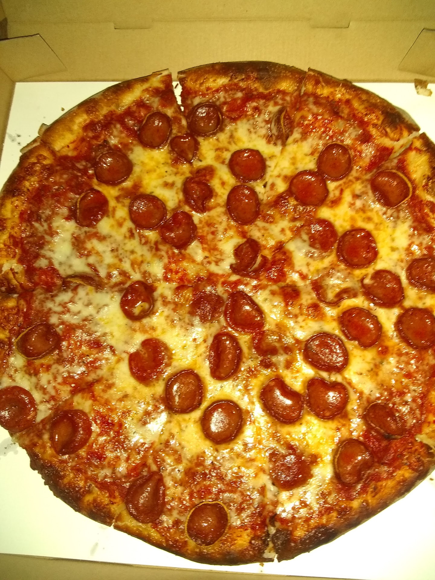 Delicious as always, we moved 6 years ago but still make the drive over to get pizza here . We ordered a deli pizza one of our favorites there when you want something different than ordinary pizza , we've been eating pizza here for over 10 years . The subs are also killer I noticed they had a few new subs since we haven't been here in awhile so looks like I'll be headed back soon to try one out.... this party store pizza will slay some of the bigger pizza...