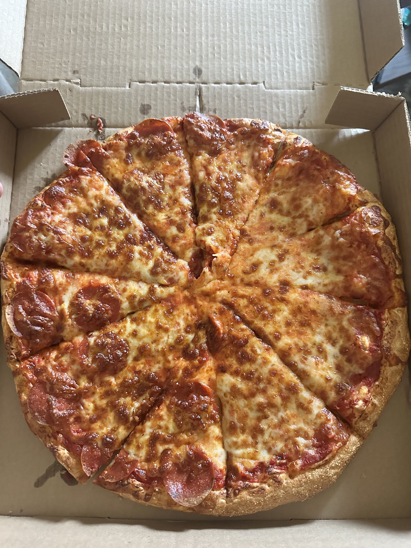 Literally only giving 2 stars because the gentleman who took my order was super polite . Let me start off by saying I worked for a Toarminas for almost a year so I know what's expected! Both times that I've ordered, my cheese bread has been OVER COOKED. Today when I ordered, my deep dish was FLAT, which flat deep dish comes from expired dough. While being flat, it was also UNDER COOKED. So much so the toppings fell off and it was so doughy and rubbery they weren't able to cut thru the pizza. There weren't pepperoni on each piece like there should have been . They stuck the ranch cup ON my cheese bread which is a huge NO NO considering gloved hands don't touch that and things touched with bare hands should never touch ready to eat food . Now let's get to the driver . I had to run and get him an extra dollar (my fault here) cause I wanted to make sure he still had a tip and I had heard the total wrong . When I come back and he hands me my change he tells me to have a good day and proceeds to turn to leave off my porch . I tell him he still has my food and he goes "long day , well, slow day" I' didn't even call to complain because I'm not sure I wanna try...