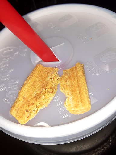 It was at this point that my daughter changed her mind so I got back in line. While waiting, I noticed that the gentleman I had spoken to about my missing drink was (presumably) on break as he was sitting at a table with headphones and watching something on his phone. I thought perhaps he had told someone else about my missing drink and maybe they needed to get some missing component from the back.