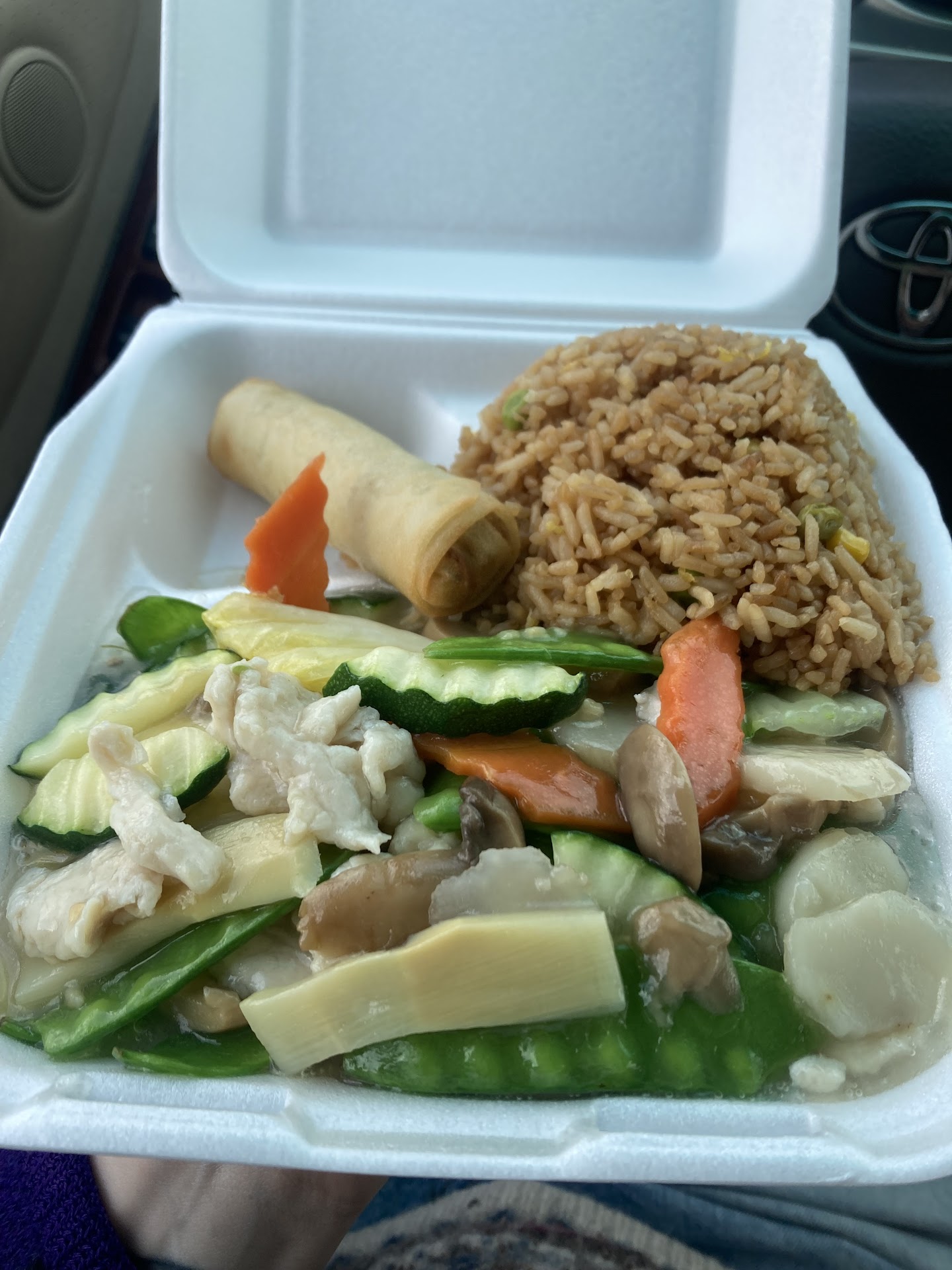 I orderd a combo of sweet and sour chicken-6.25$ And a plate of beef chow mein_7.29 I must say, when i got my bag food it smelled wonderful. The chow mein was delicious! It wasnt ovrrdone with too many veggies like other places, it did need more beef but was still very tasty. The sweet and sour chicken plate was decent. The chicken did come plain with a sauce next to it, i wasnt quite a huge fan of the sauce, but that may be because im more of an orange chicken person :p.... Anyways, it tasted good once i got the taste of it. The ham fried rice was quite good, it was tasty actaully. I only had likr 3 grains that were hard/overdone. The egg roll actaully tasted good, and i usually hate egg rolls. Out of the 2 plates, my fav was the chow mein with beef. Next would be the rice, then the chicken along with the sauce, and fianally the egg roll...