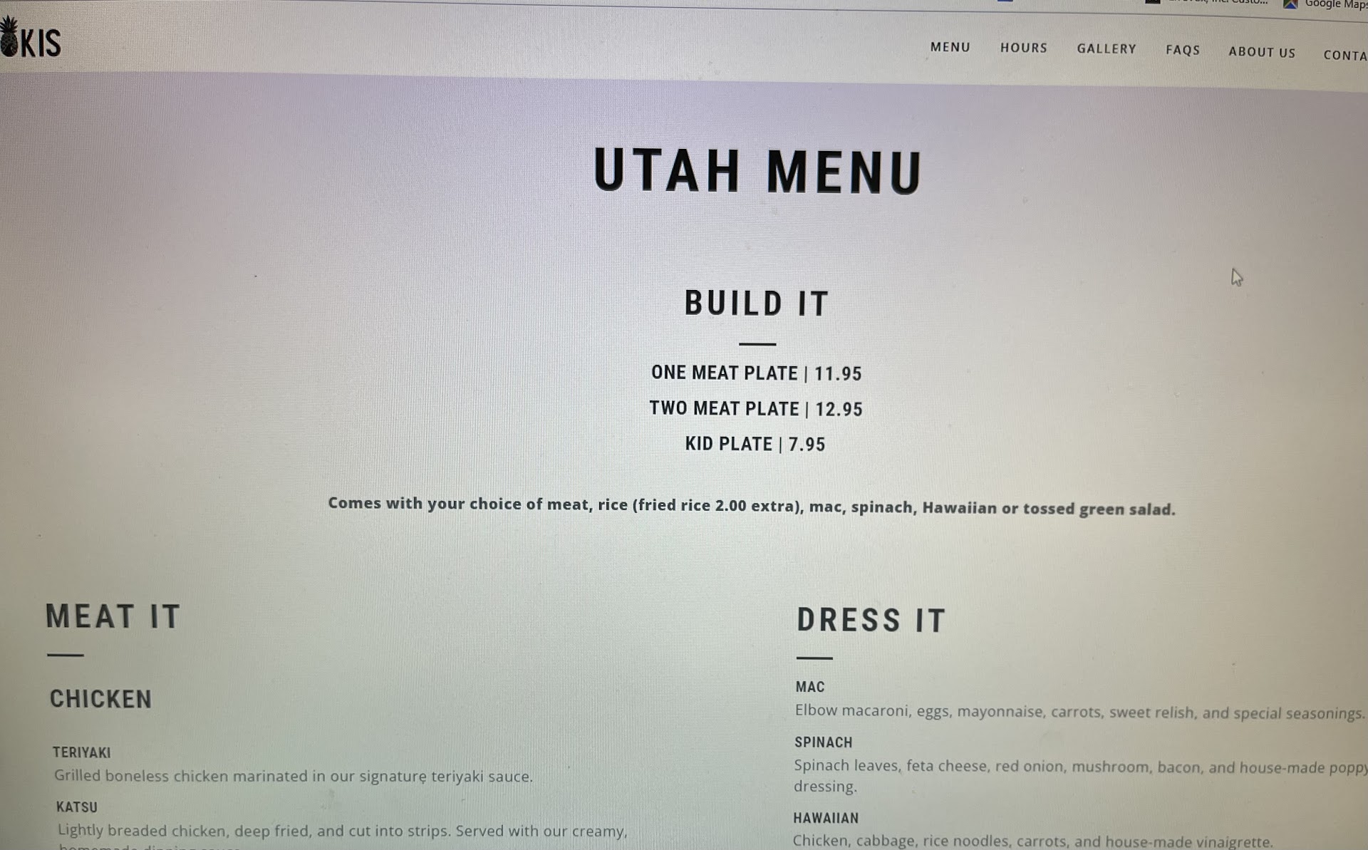 Read moreI won't be spending money here anymore. I've been here a couple times before and I remember the food being decent, expensive, and very salty. It had been 2 years and we decided to try these guys again. I pulled up to the drive through at 8 pm and start ordering when they said they didn't have ANY chicken and they would have to grill some up. They offered to do so, which would be about 20 minutes of waiting. I passed because it was suppose to be a quick dinner pick up and thought I would keep driving down redwood and maybe I might find something else that sounds good for my family. I drove for 30 minutes, and decided I'd return to Mokis as surely they would have teriyaki chicken for my 3 orders now... Well I drove back down and they said they still didn't have chicken and they were not going to make anymore. This blew my mind how this is what their restaurant is known for and how they even let their supply run dry for the day before closing, didn't bother to make any more and turned away all the customers that came between me. That's awful business practice and unfortunate I just won't even try this...