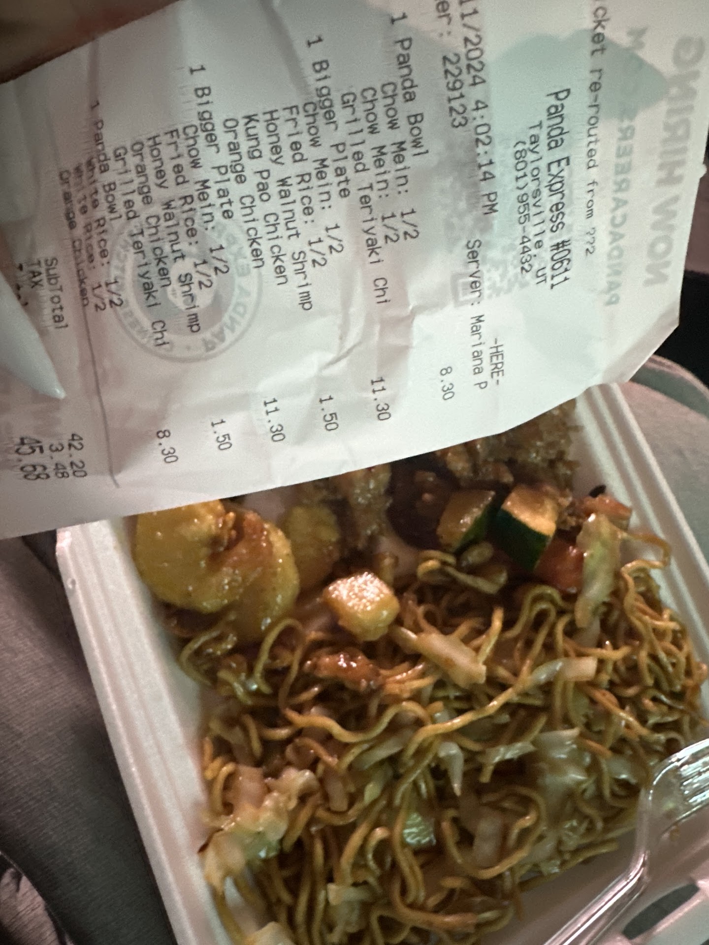 Putting away and cleaning up 30min. prior to close. Foods definitely not fresh. I used to work at Panda so I know this isn't their policy. I ended up just walking out and eating somewhere else instead of asking them to make fresh everything I wanted (considering they had nothing that I wanted even available).
