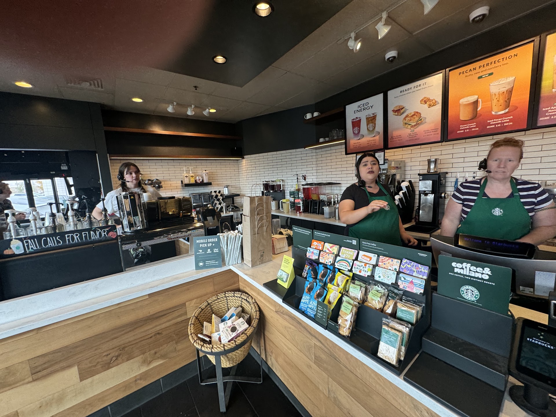Read moreI visit Starbucks in general very frequently like 3-6 times a week. Almost ALWAYS use the app to order ahead, I usually go to the one closer to my home, they know me and what I order and how i like it. I have however visited this location quite a few times, when I'm closer to this 1. Honestly i feel as though it is hit & miss with this location. My most recent visit I was like I'm going to go inside to order and explain what i would like, they had it done quite quickly despite the drive through always being PACKED. When i see it, i think to myself this looks like dark caramel and i had asked to substitute dark caramel for regular. (Which they do charge for) I go to my car and debate for a minute whether I should say something or not, i HATE confrontations, altercations, and/or making people feel bad or me being an inconvenience. I ultimately decided to go back in. I politely ask the worker that prepared it if it was in fact dark caramel and she says"no, um, no, i mean yes, yes it is" i apologized a few times and say oh ya I actually wanted it substituted for regular and it says it on the sticker and she goes mhhm, so i hand her my drink and she informs me she can't take it back so just give her the sticker with the order details and to throw the frappe away in the trash behind me( I'm guessing they have quite a few incidents where ppl say it's wrong but still want the messed up one also, and they don't like to let them??) I say oh, ok. No problem. However She did seem frustrated, turned to her coworker and said would u make this drink, the co worker agreed, grabbed my sticker and made it. But the barista now making it also seems a bit bothered and i watched her make it and it didn't seem made right either, She hands it me, i apologize AGAIN and say thank you. I taste it and it doesn't taste right but at this point I just don't want to deal with another interaction with them so ultimately i just tell my dad he...