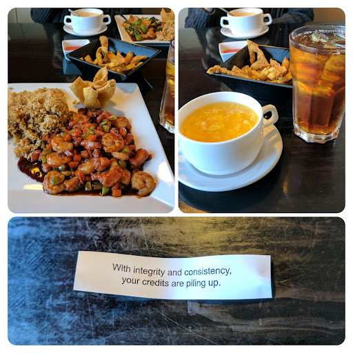 If you are looking for good, affordable Chinese food that isn't your basic run-of-the-mill "China Express" look no further! We pulled up and the outside looked a little sparse, almost would have thought it was closed had it not been for the open sign. We walked in and its a simple, clean dining area with a nicer area with white leather seating on the other half (I assume for renting out). I would suggest to them to get some ambience music, I hate only hearing silverware hit plates while I'm eating. Menu was small but adequate, a little confusing though -- had a difficult time figuring out what was still available for lunch and what came with what sides. I got the Bang Bang dish which was a yummy curry plate while my boyfriend had beef fried rice that he said was loaded with meat! The wonton soup was delicious as well! They also serve these "chips" on your table that dip well into practically anything. Will return next time we are in...