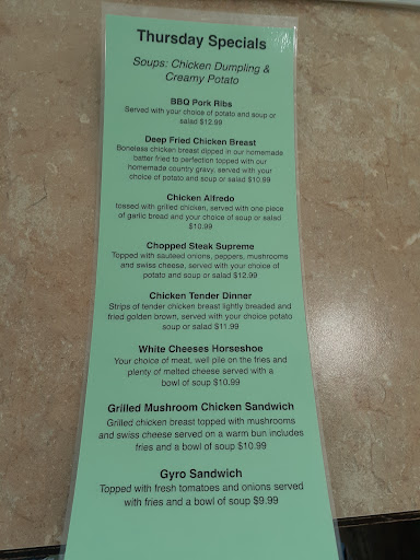 Read moreI have never been disappointed in their service or food . They serve an abundance of food. Plenty to take home for two meals for most. For me three meals. They are very clean. The plates of food come out hot fresh, and you can tell the cooks take pride in their dish. Their soups have fresh cut vegetables in them wich is always refreshing to see. Salads are not shredded and yellow, fresh lettuce, tomatoes, and cucumbers. Drinks like coffee & tea is always at plenty. My favorite waitress is Betty. She is usually in at breakfast and lunch. Sun.-Thur. Ask for her and tell her T-N-T recommended her. If you go on Sunday they are packed and the service is still great I have almost always had Betty. Unless I have went in there on her off hours or day off. Thow l have noticed a small price jump since I have been down here going on 4 yrs. I highly recommend this place for...