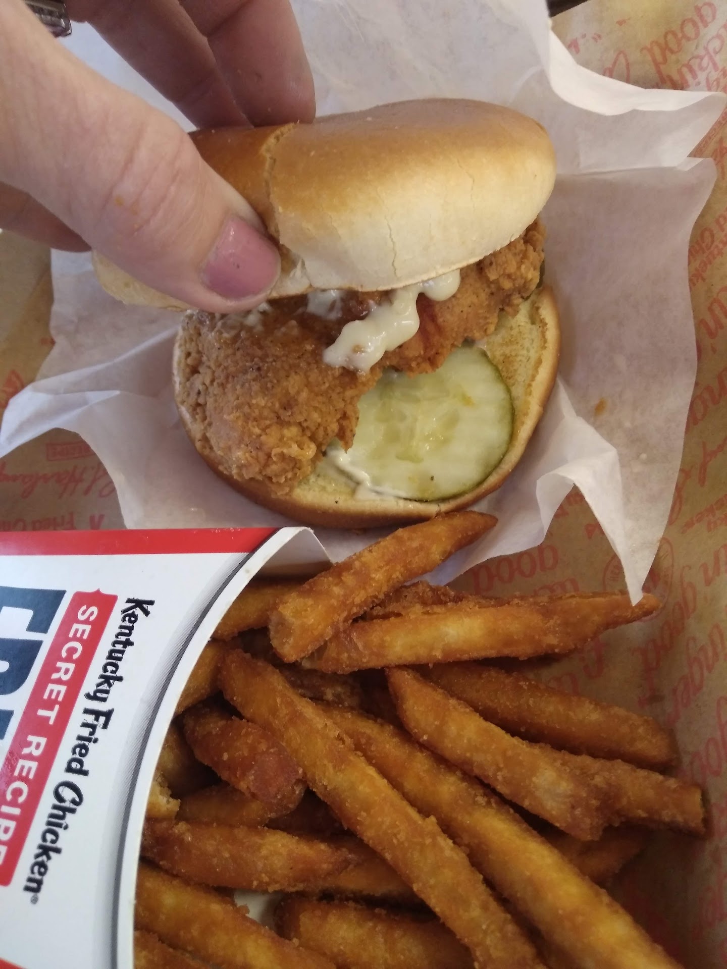 Read moreOrdered 2 piece extra crispy breast meal, and a chicken strip meal with bbq and honey mustard sauce, and some honey for the biscuits at the drive thru. Reiteriated the sauces and honey at the window. Pulled around and parked to eat. Found we actually got a 2 piece original recipe breast and thigh, no sauces and no honey. Go in to counter (very politely), and was told they didn't have 2 extra crispy breasts. So I suppose we just got whatever they had with no consultation about what we actually wanted to do. Turns out they did have 1 extra crispy breast and gave that to us. Experience was bad, attitude of workers was bad and the food was mediocre at best. Would...