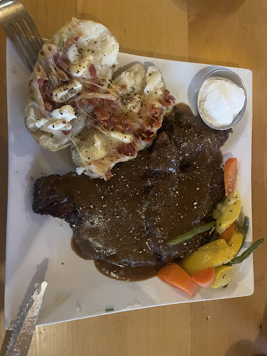 The food was very delicious and my family was very happy with their meals. The Mac and cheese seemed like a homemade recipe. The pasta was more on the soft side than al dented, but still maintained its structure. The cheese sauce was very creamy and had a surprising smokey taste over all. The Mac and cheese was topped off with amazingly smoked pieces of thick bacon topped with cheese and parsley. The chicken fried steak was a thick slice of steak that had a smokey taste to it. The steak was battered and fried fried perfectly. The steak was topped off with a delicious brown pan gravy. The chicken fried steak was very tender and perfectly cooked. The sirloin steak was perfectly seasoned and cooked to requested temperatures. Unfortunately the biscuits came out to the table burnt and the baked potatoes were over cooked and hard.