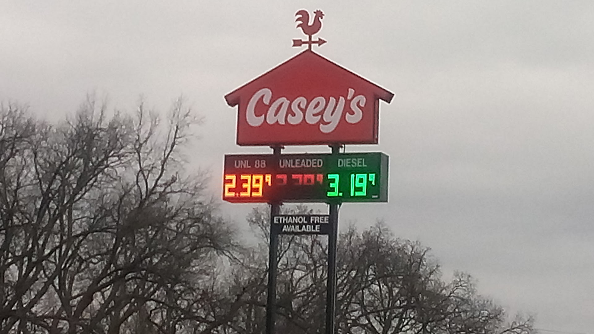 The only things I know for sure about Casey's is it has gas pumps out front that have diesel, 10% ethanol unleaded, unleaded, super unleaded, and one other I don't remember on that pump. A windshield washer and an air pump. Other than those things, I don't know anything else about the place. I didn't go into the store, I paid at the pump. Oh, and the fuel price was $2.65 per gallon at the time I was at that location. Plenty of pumps to go around too. The windshield squeegee worked and the fuel did as well. I wish I had more info for you to go on but that's all I have...