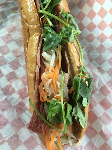 I got the J Special, I believe it was called for my sandwich. This banh mi is what most people expect when ordering. Everything was proportioned perfectly. There wasnāt too much pickled radish and carrots, the jalapeƱos were just enough and the baguette!! Holy hell the baguette!! Soft and warm inside and crunchy on the outside like a French baguette should be.