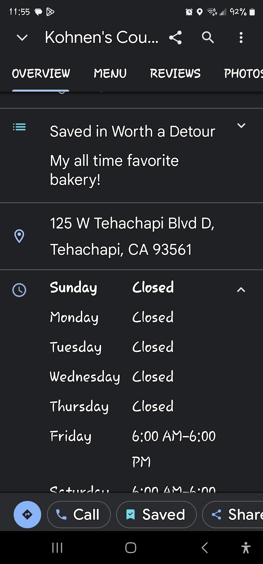 Read moreI went to order dessert for my granddaughter's Sweet 16th birthday party. Had tried ordering in advance. However, the bakery was closed on Wednesday when I went over and found it closed. Forgot it was now closed on Weds & Thurs.