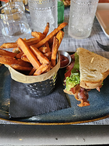Read moreWe were on a long drive and wanted to take a break and have a snack. We got there and ordered garlic fries. It took about 20 minutes for them to arrive which was a little disappointing. The staff kept checking in with us so I think they knew it took longer than it should have. The interior of the restaurant is really odd. There is a big area with fake grass in front of the bar with one couch seating area on top of it, there is a very long bar with massive projectors screens behind it but it wasn't playing anything besides Spotify info for the song playing. The actual seating area with tables tooked very spread out and random with very cheap wobbly tables. The whole interior just didn't look put together and harmonic, colors were scrambled around with no system and the vibe because of that was really chaotic. There was also considerable noise from the...
