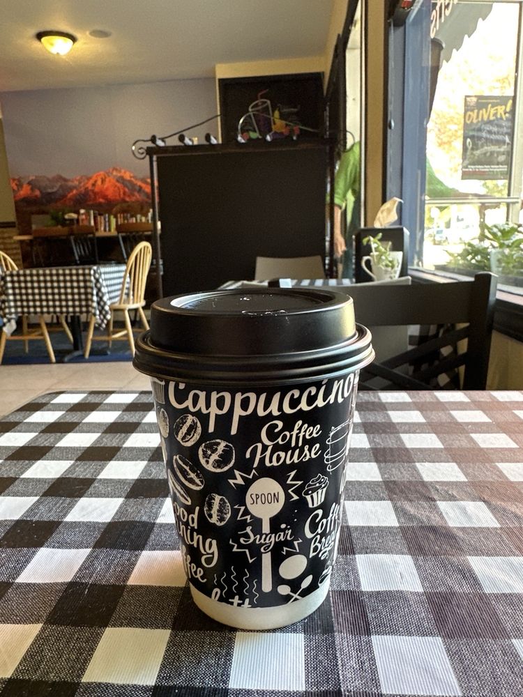 The young man delivered my latte and ensured it was how I wanted it. When it arrived, the sandwich was perfectly delicious! I enjoyed every bite of the sandwich and took my time drinking the latte, relaxing a bit before getting back on the road.