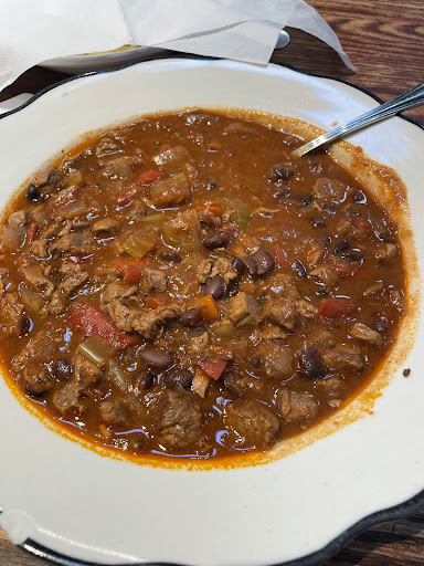 As for the food, it was a bit of a mixed bag: ⢠My husband had the pasta marinara with meatballsâhe thought it was just okay and wouldnât order it again. ⢠My mother-in-law pre-ordered her pizza and enjoyed it. ⢠My father-in-law got the avocado taco and the beef fajita taco and liked them both, though he raised an eyebrow at the $5 per taco price. Personally, I thought it was fair (plus we were paying, so đ¤ˇââď¸). ⢠My younger daughters ordered plain pasta with just parmesan (picky eaters!) and they enjoyed it. ⢠My oldest daughter went with the garlic parmesan bread as her main meal and loved it. I tried it tooâit was super flavorful, though a bit heavy on the garlic. ⢠I ordered the double black angus chili, which sounded amazing. It was hearty and loaded with ingredientsâblack beans, tomatoes, celery, green peppers, onions, and beefâbut it lacked the bold spices I expect in chili (especially being from Texas). It tasted more like a tomato-based stew than a true chili. Still decent, just not what I was hoping for.