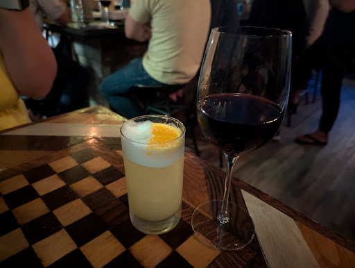 When arriving There we were taken aback by how loud and overcrowded it was. We told the hostess/bartender that we had a 9 PM reservation (it was 8:50 PM). He instructed us to sit at the bar where only 1 seat was available currently. We order a couple drinks while waiting for seating availability to open.