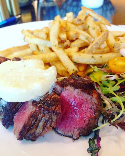 Steak & Frites is a prime grilled steak (choice of filet mignon or hangar steak) topped with your choice of bleu cheese butter, peppercorn crust, bordelaise sauce, or garlic herb butter served with hand-cut pommes frites and arugula salad. I love the combination of filet mignon and bleu cheese. The bleu cheese butter added a fatty, pungent creaminess to the lean filet. The filet itself was perfectly grilled rare and so tender it could be sliced with a butter knife. The pommes frites were expertly fried with crispy exteriors and tender potato inside. Rating: 5/5