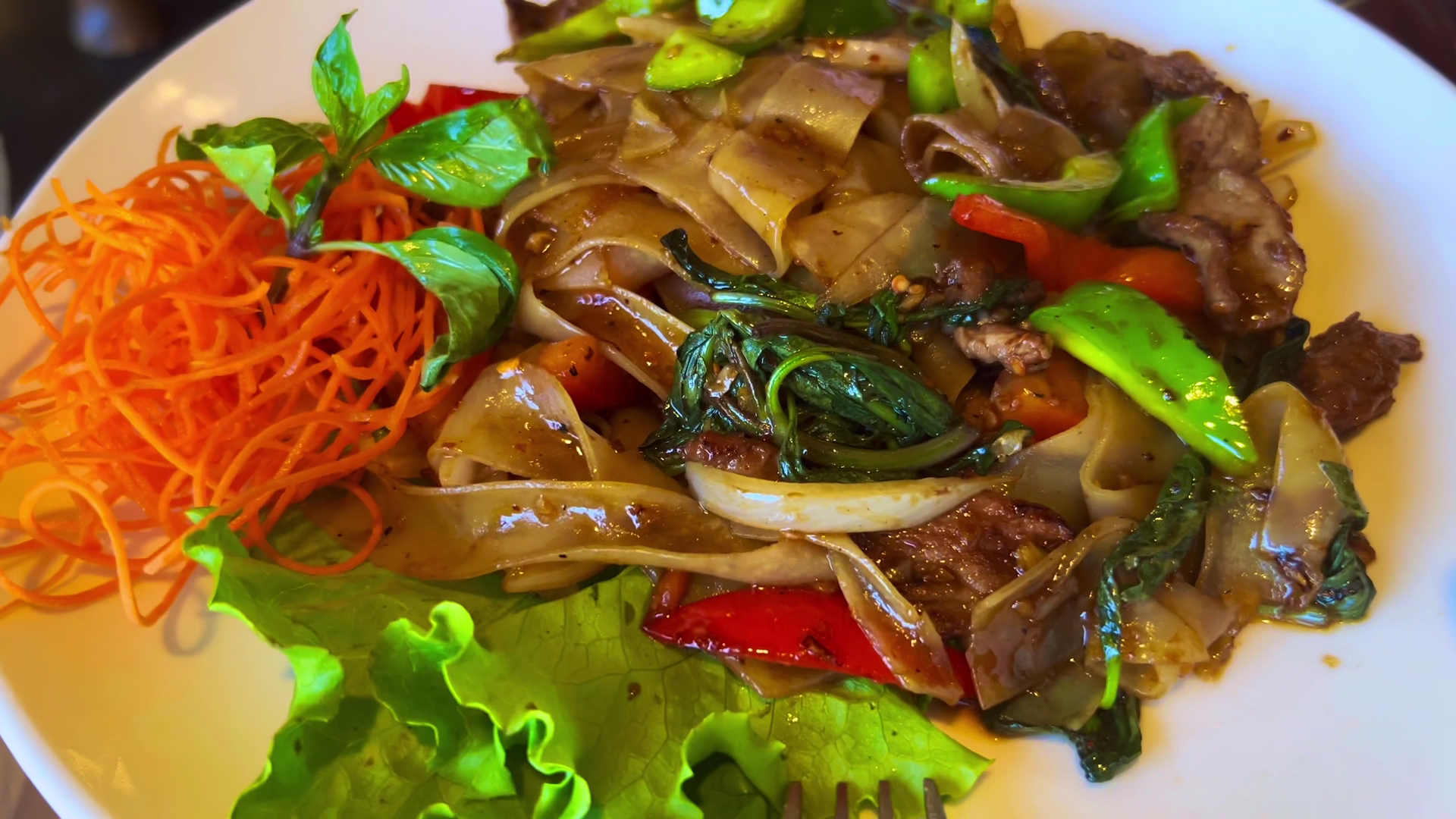 The food was overwhelmingly sweet—unbelievably sweet. To the point where it was almost inedible. We started with a papaya salad, which is a classic Thai dish. Sadly, it had such a strong garlic flavor that it completely masked any other ingredients. But the real issue was the overbearing sweetness in every dish we tried.