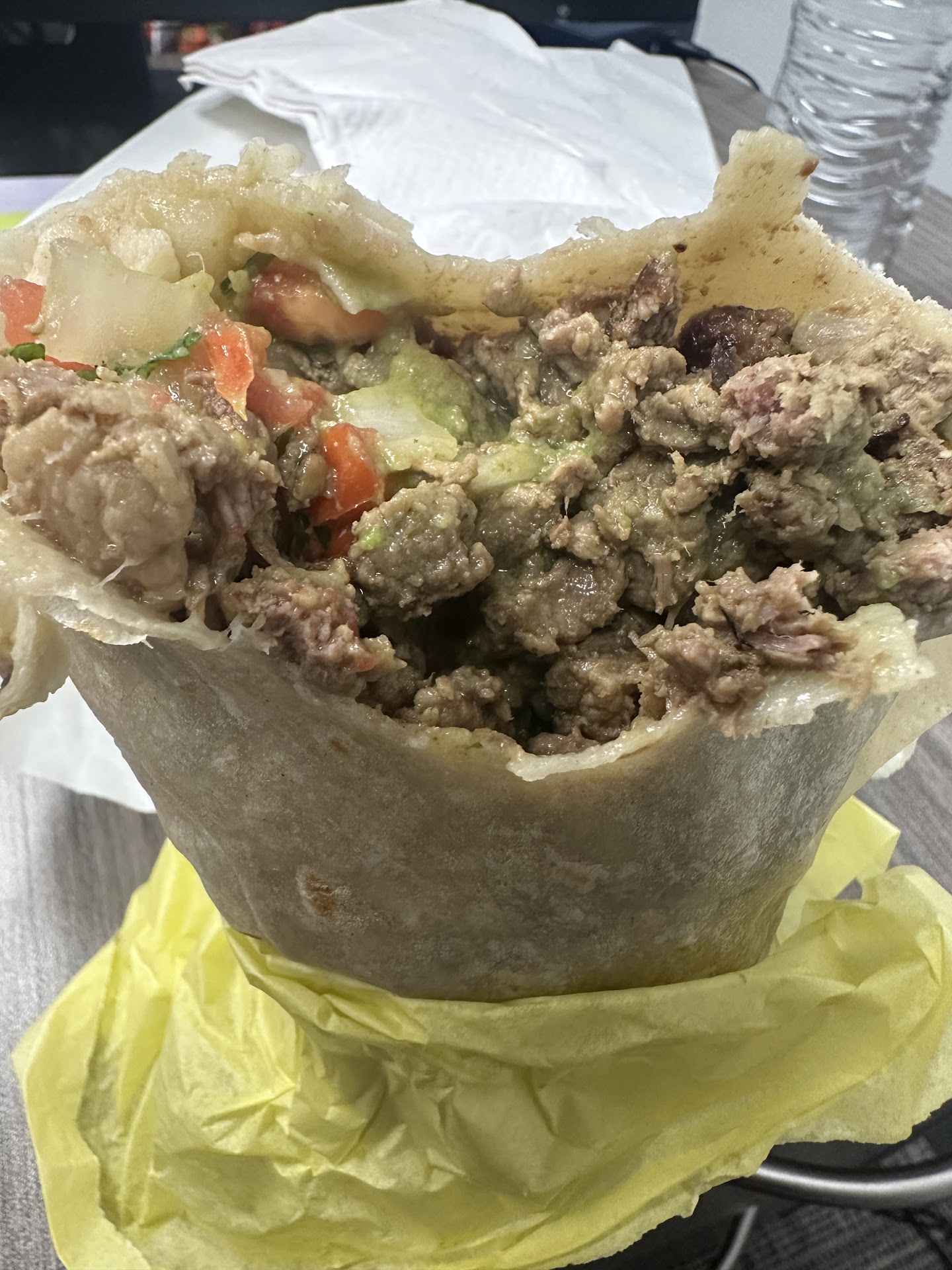 I hadn't been here in awhile but when I got my burrito, I opened it up to find the majority of it was burned. This is totally unacceptable. The cook MUST BE BLIND if he didn't see the meat he put in was totally burned. I didn't feel like driving back to get it replaced so I ate half but couldn't finish so i just threw it away. Yuk. There is absolutely no excuse. The cook must have seen it burned. And I think the server girl even knew because she seemed nervous giving me the food. How anyone can knowingly give horrible food is a really bad sign. For 10 bucks? Ummm... no thanks