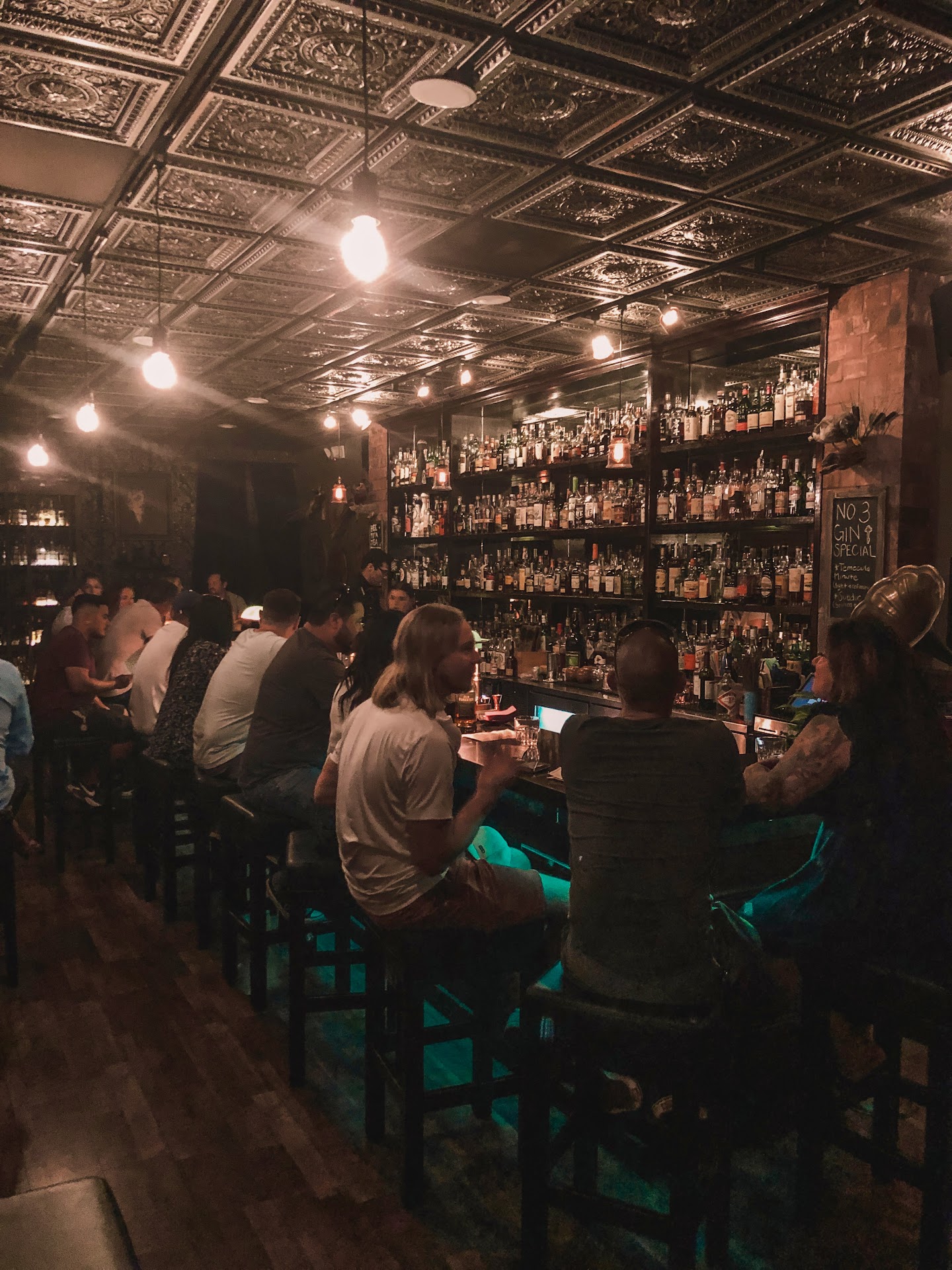 You are paying for an experience. Please do not get this gem confused with a commercial style bar. I absolutely love speakeasies. So first it has a secret door and everything, my first thought was THIS IS THE REAL DEAL. You will step into be 20s and wish to never leave. The decor is gorgeous and the music is mood setting. When you sit you will be blessed to encounter Tristan!!! He is nothing less than perfection. He is beyond knowledgeable and does it so effortlessly without making you feel inept. I mean the man has got to be the most well informed bartender ever. He is not one of these guys throwing your drinks together and moving on to the next patron. EVERYONE is hanging onto his every word craving the stories behind each drink he is crafting. He is not your average bartender ppl and you will not be paying an average price. This place is pricey and for good reason. 13 dollars a drink sounds crazy until you actually walk in and see what you are getting. I'm a penny pincher and would save just to have this experience. You have to try this place out. Don't miss out. Once you come here you'll never see bars the same. It was like I was living the prohibition experience. Must try drinks Dead man's chest ($18) Wild wood, and a classic Whiskey sour. Not that out of the bottle foolishness. This is my new go to for drinks. It really changed my entire...