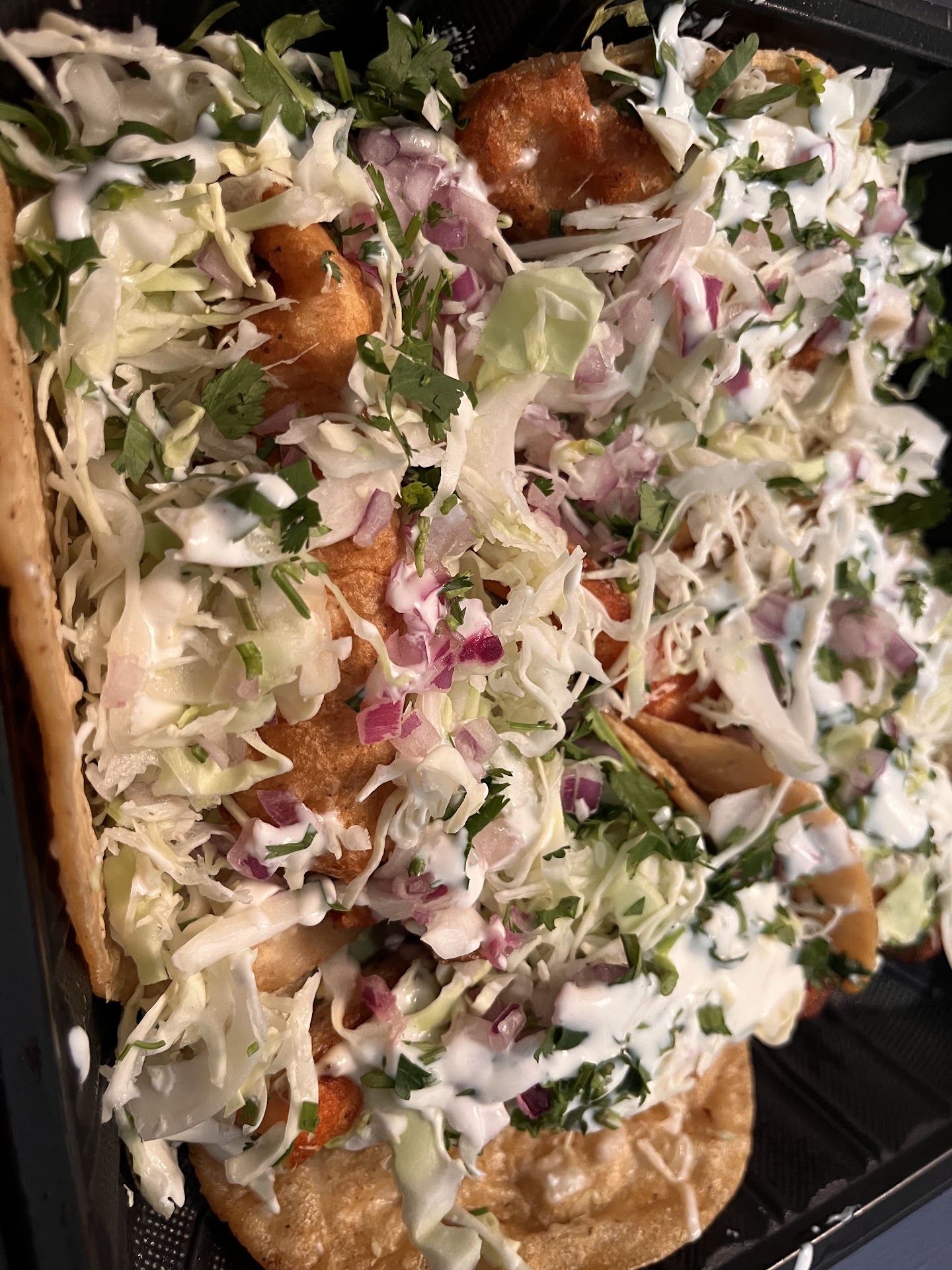 Finally, we tried the Baja Fish Tacos, featuring battered swai fish cooked to perfection. The combination of the fish with the crunchy cabbage, cilantro, and onions, topped with more Baja cream sauce, was simply irresistible.