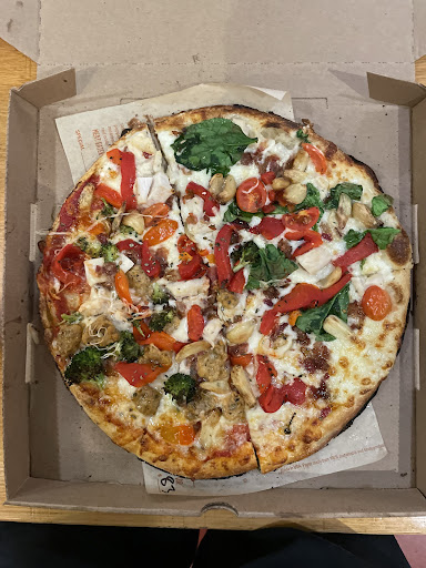 The store itself looked clean and my pizza was ready fast. Got it home and on opening the box thought, "this doesn't look like any pizza I've ever gotten...what the heck is up with the crust??" It reminded me of those prebaked Boboli crusts you get at the grocery store - only much worse. It was totally burnt on the bottom and note, I did not check the option that said "well done". Crust is such an important part of a good pizza - in my opinion, it should be puffy and airy from good gluten development. I can't believe they don't prepare you for the fact that this you're getting a dense, non-traditional pizza crust.