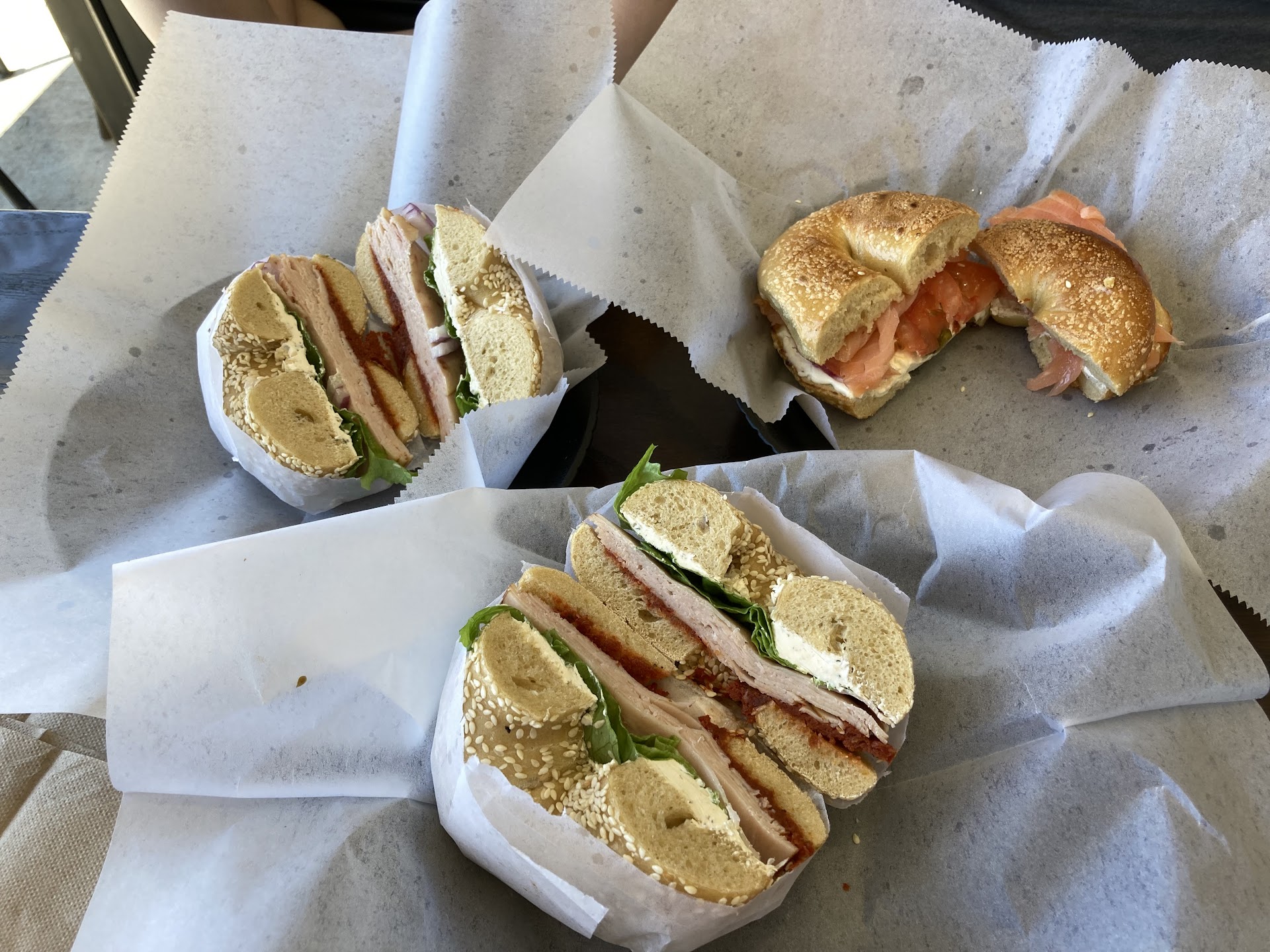 Ā Ā Ā Read moreOrdered a sandwich (first) and a dozen bagels to go (after eating my sandwich). The sandwich was OK. WAY too much cream cheese. The bagels to go were for an office brunch and the overwhelming comment was that they were "bready" like a grocery store bagel, and did not have that essence of bagel or the right texture. I've gotten bagels here fairly regularly before and something definitely changed (besides the prices, which have gone up quite a lot). But I'm willing to say it was a fluke and maybe someone forgot a step, because every other time they've been good.